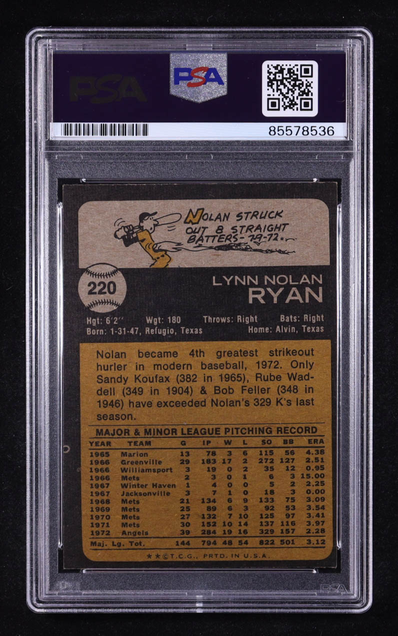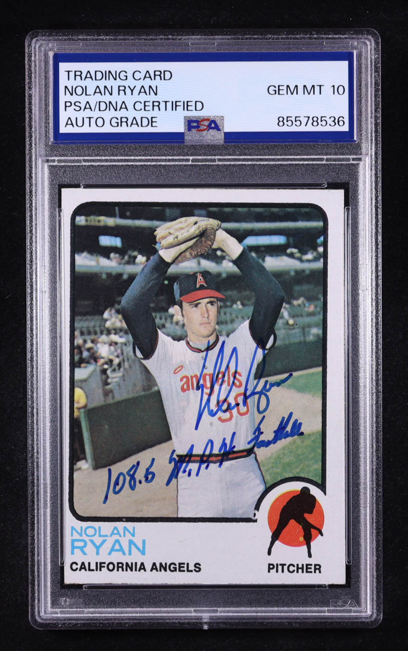 Nolan Ryan Signed 1973 Topps Inscribed "108.5 MPH Fastball" #220 (PSA | Autograph Graded PSA 10)