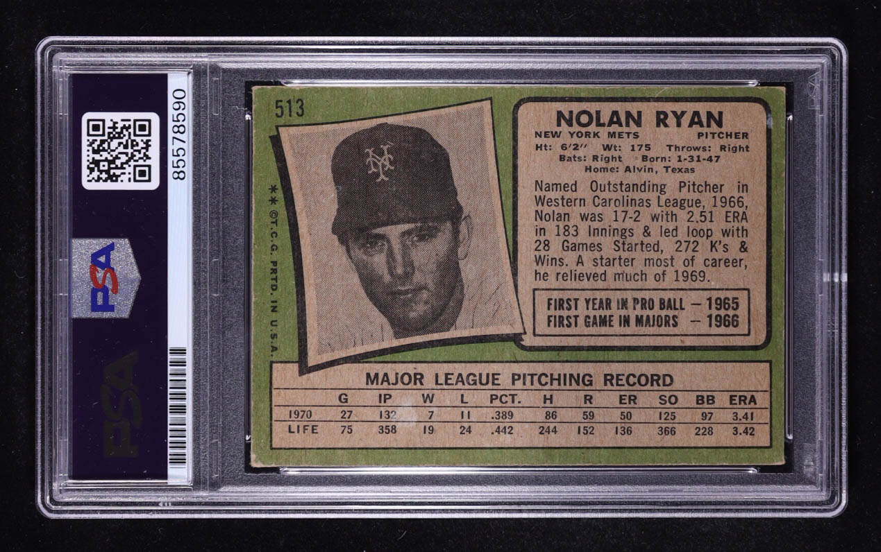 Nolan Ryan Signed 1971 Topps Inscribed "HOF 99" #513 (PSA | Autograph Graded PSA 10)