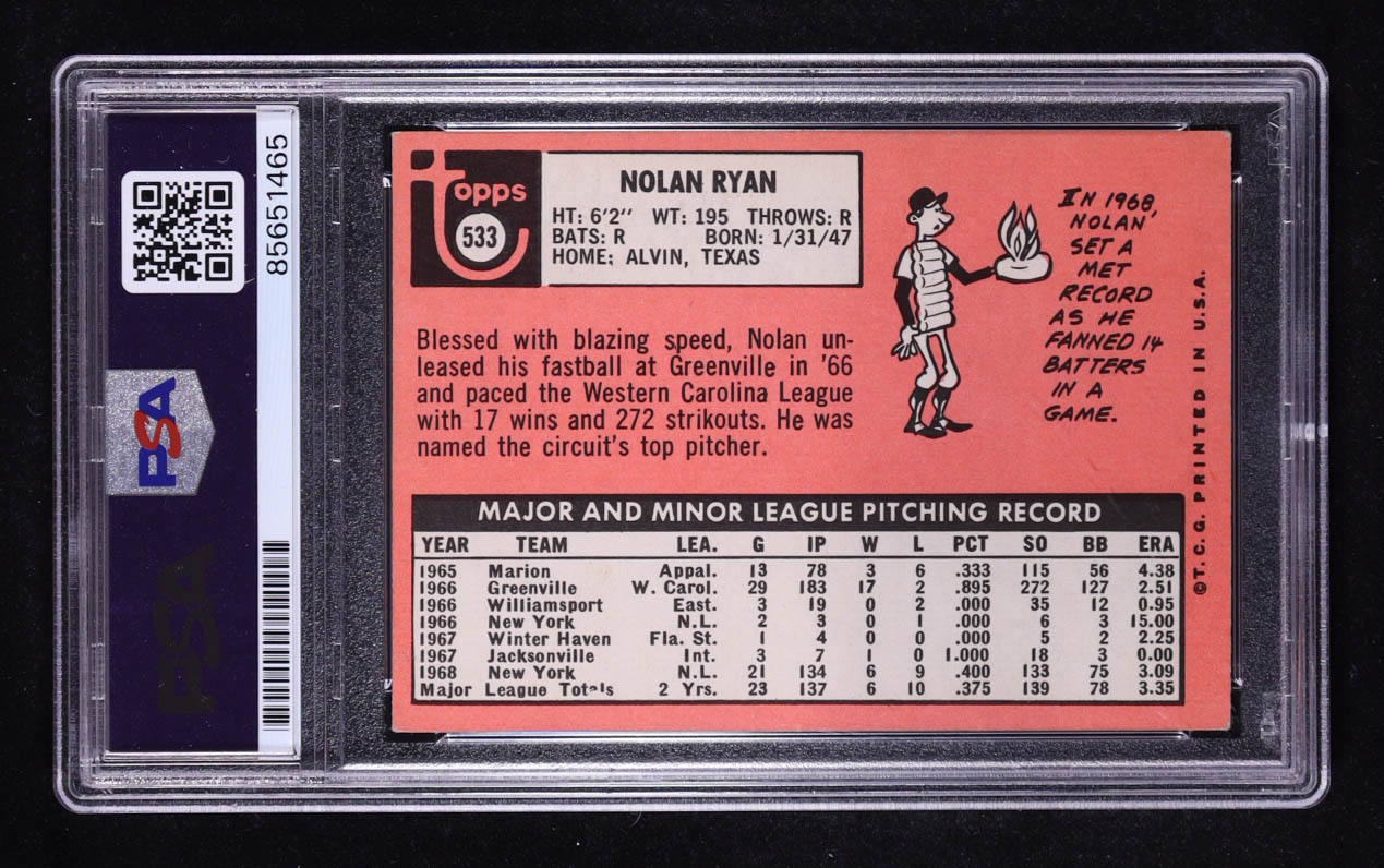 Nolan Ryan Signed 1969 Topps Inscribed "324 Wins 5714 K'S And 7 No-Hitters" #533 (PSA | Autograph Graded PSA 10)