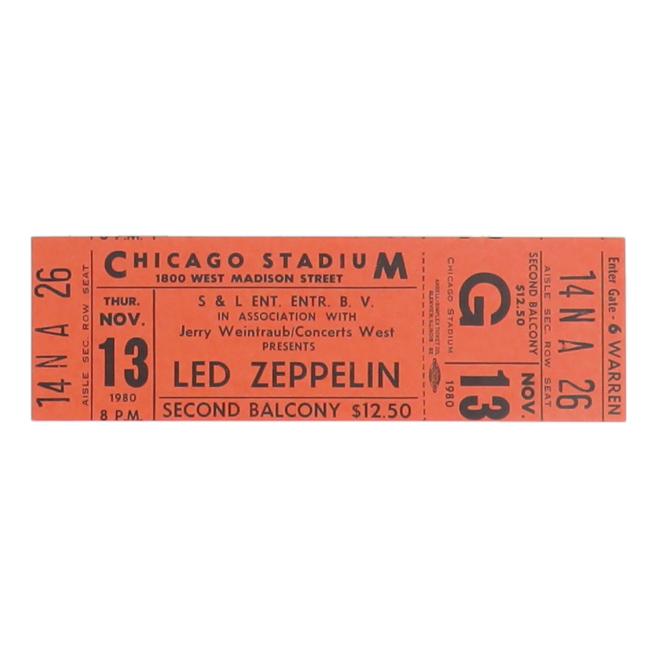 Led Zeppelin Original 1980 Chicago Stadium Concert 12x18 Poster & Ticket