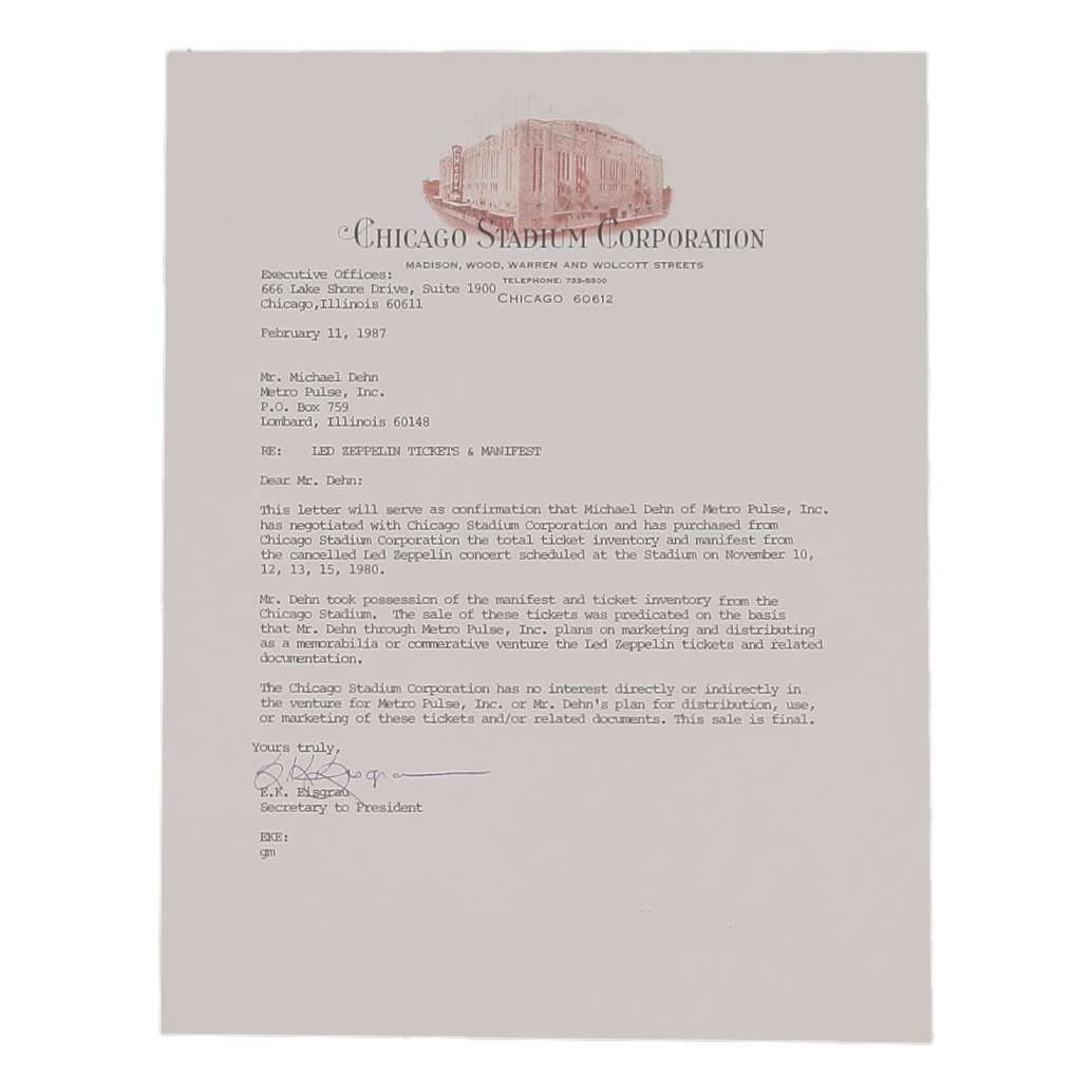 Unsigned - Canceled Tour Date Due to Death of Drummer John Bonham