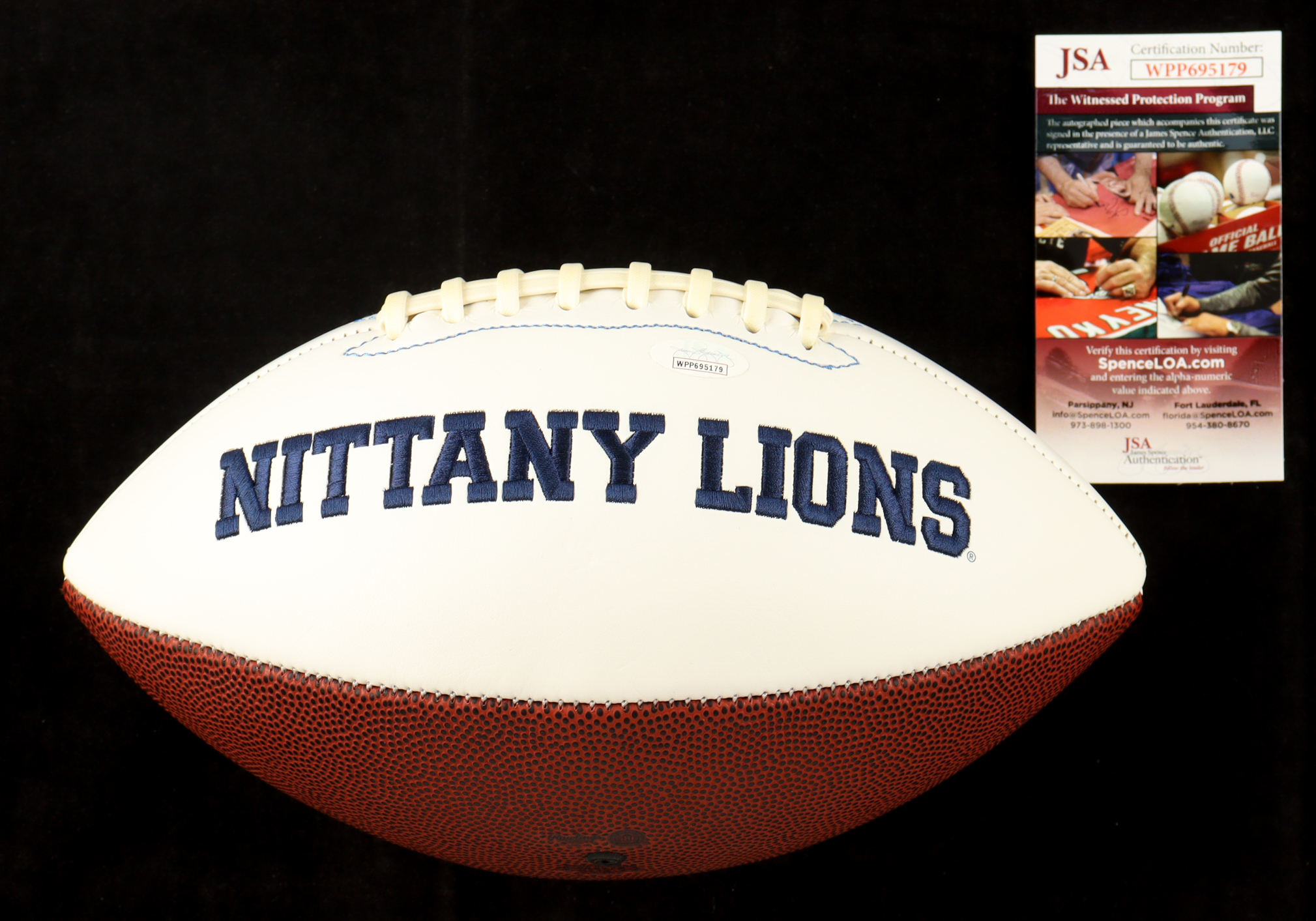 Rawlings Penn State Nittany Lions Logo Football. Hand-signed and inscribed by John Cappelletti. Please note, the signature and inscription have bled and there are minor stains throughout the football.