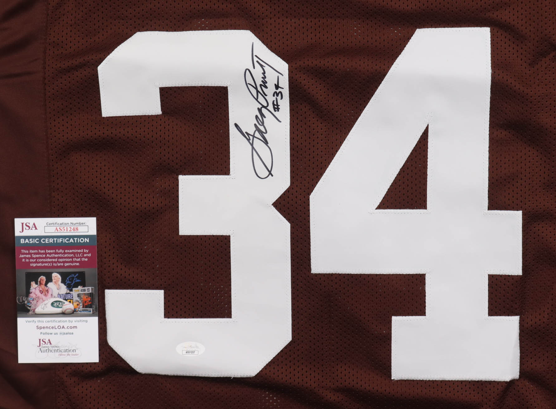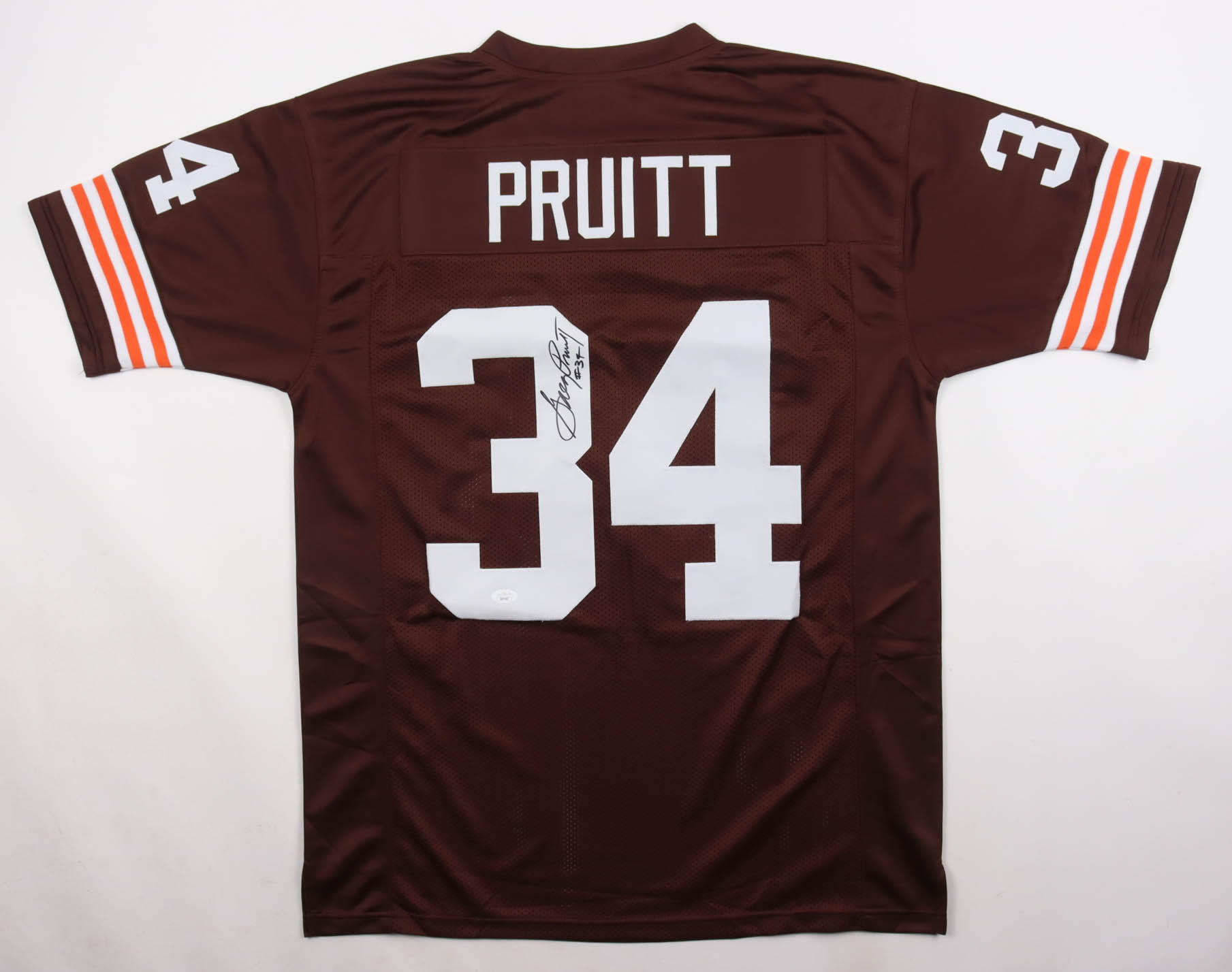 Custom jersey with everything sewn on, size XL. Hand-signed by Greg Pruitt.