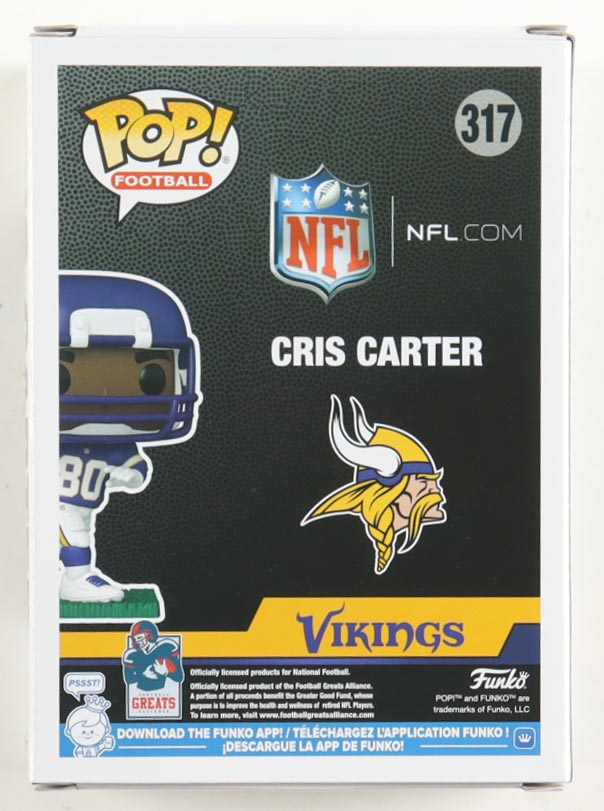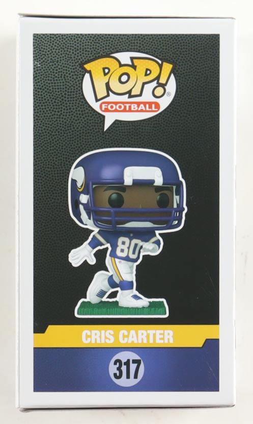 Funko Pop! vinyl figure measures approximately 4" in height. Hand-signed on the packaging by Cris Carter (Minnesota Vikings, HOF).