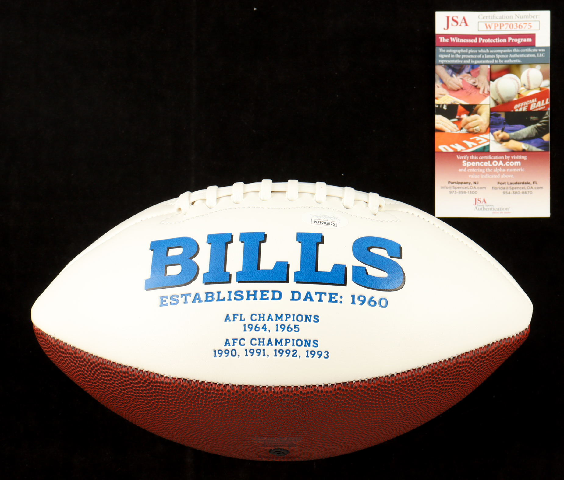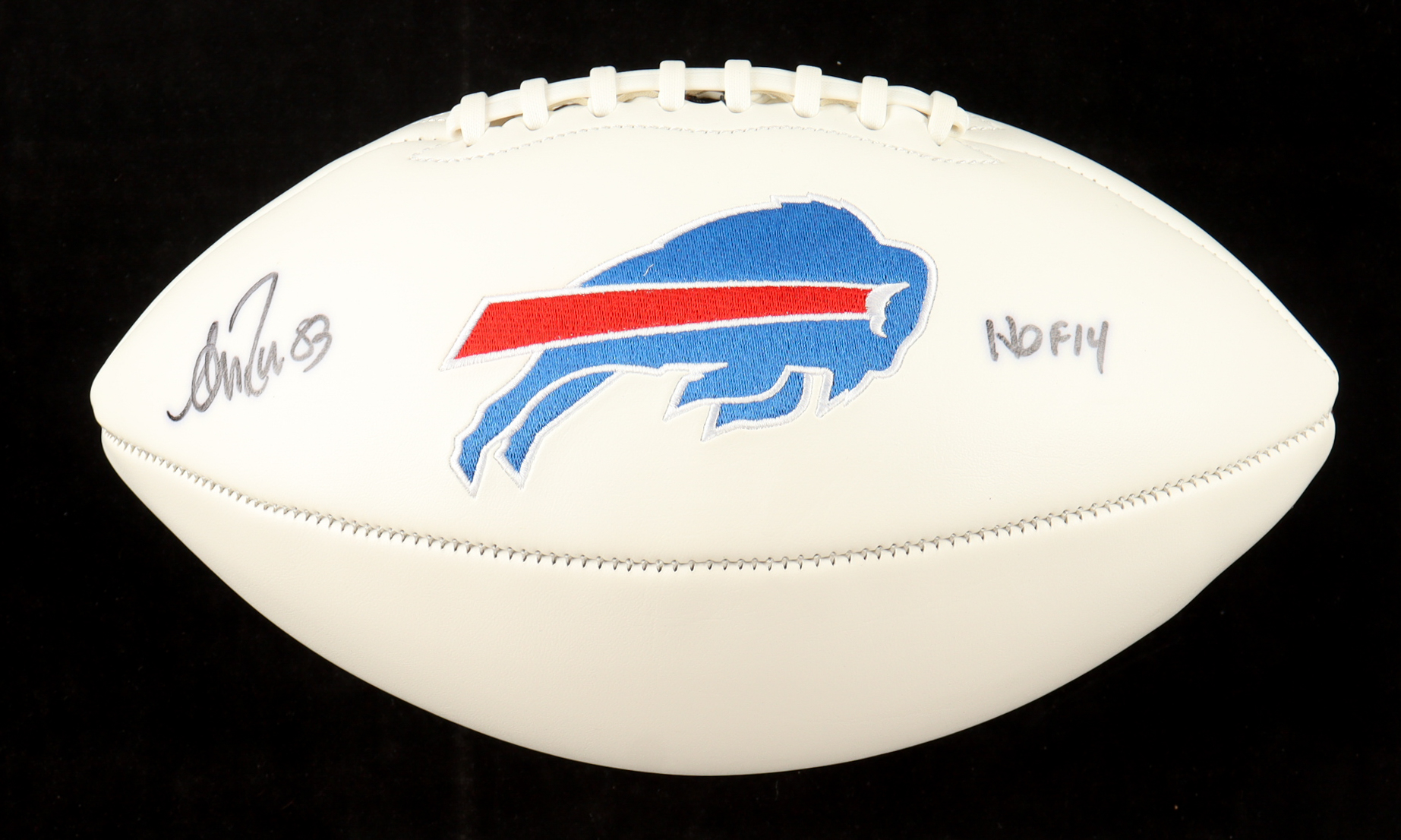 Buffalo Bills Logo Football. Hand-signed and inscribed by Andre Reed (HOF). Please note, the signature has bled and there are stains throughout the football.