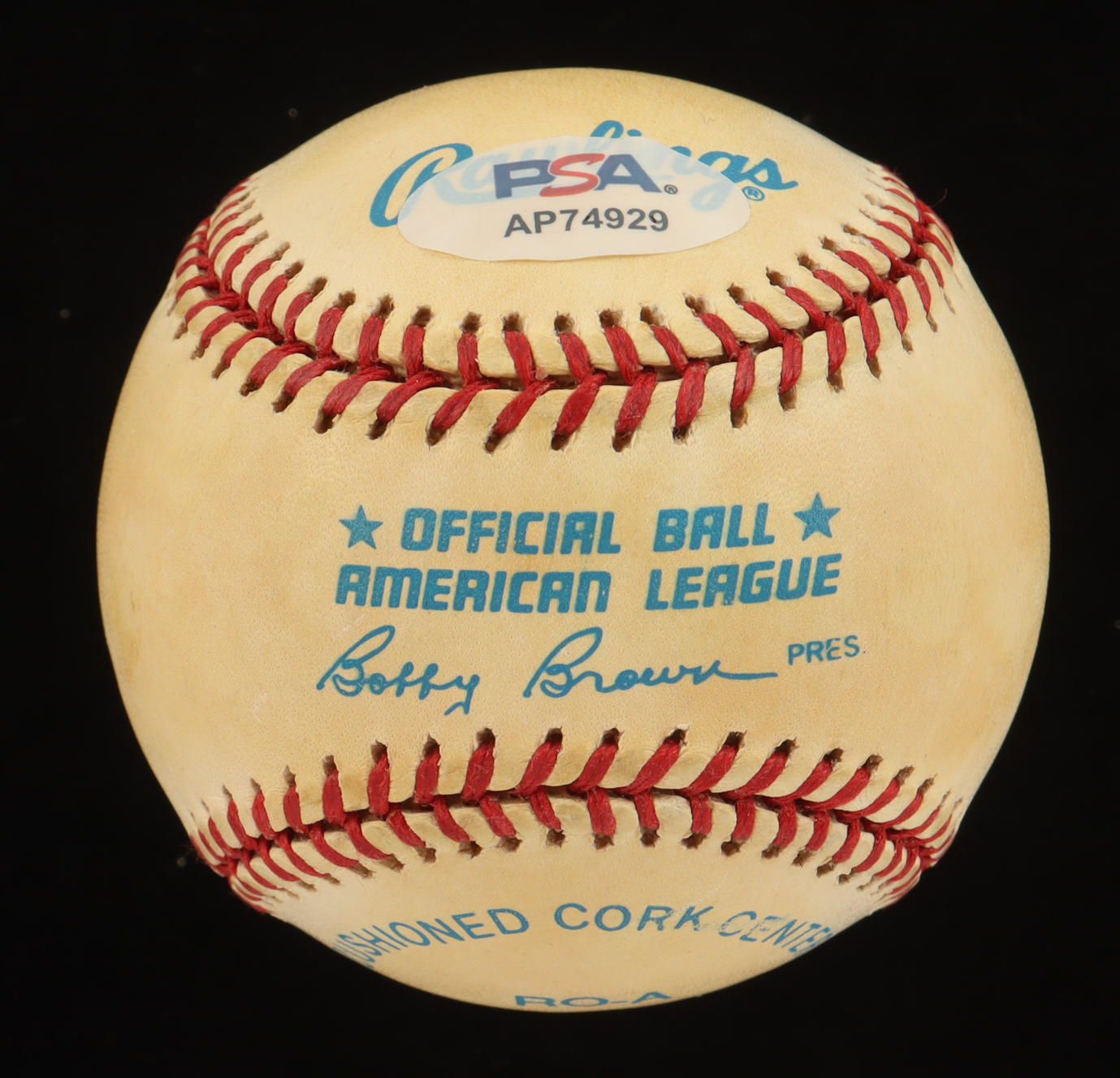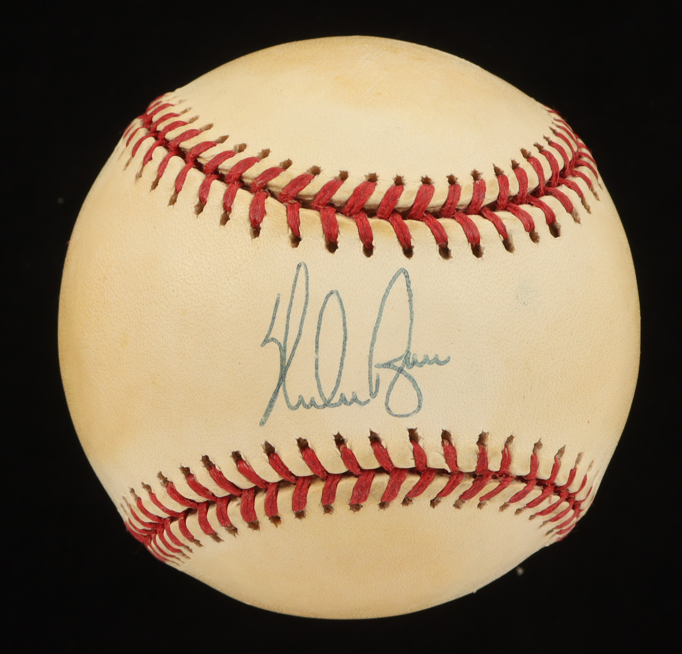 Rawlings Official American League Baseball. Hand-signed by Nolan Ryan (Texas Rangers, HOF). Please note, the baseball is naturally toned.