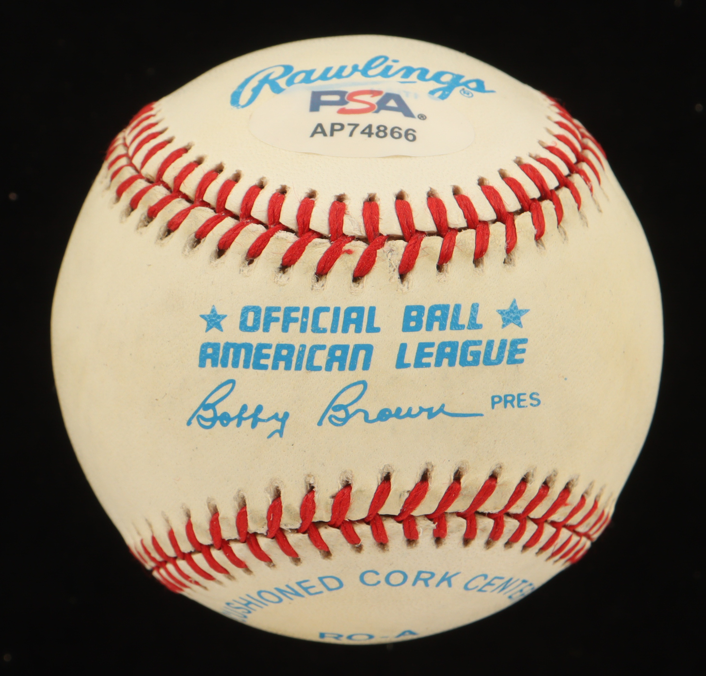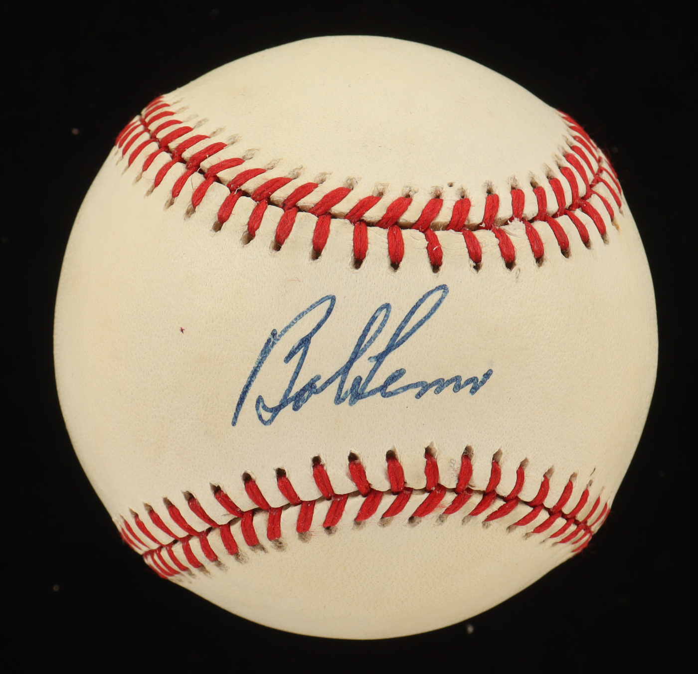 Rawlings Official American League Baseball. Hand-signed by Bob Lemon (D. 2000, Cleveland Indians, HOF). Please note, there are stains throughout the baseball.