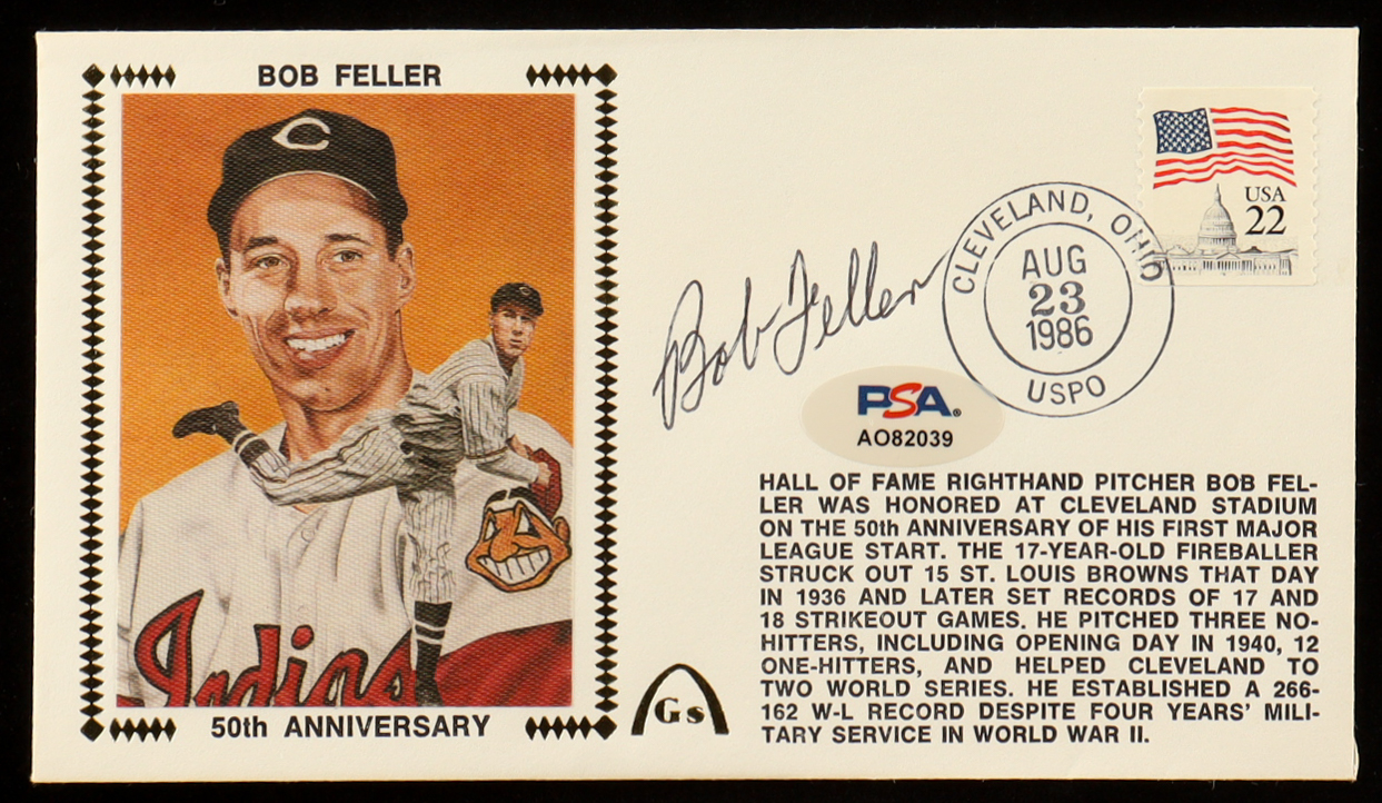 Bob Feller Signed Indians 1986 FDC Envelope (PSA)