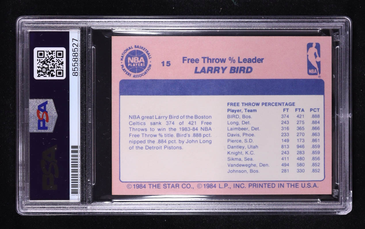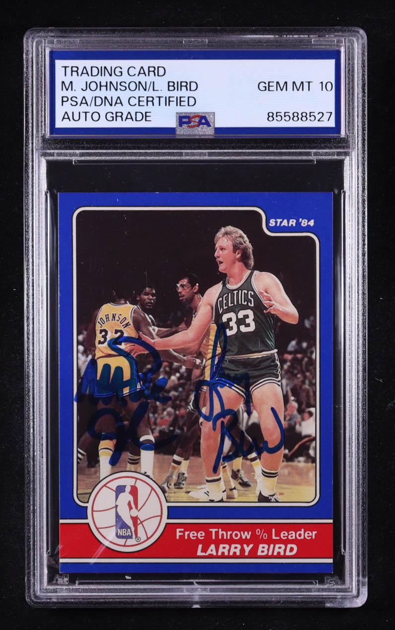 Larry Bird / Magic Johnson Signed 1984 Star Co. Free Throw % Leader #15 (PSA | Autograph Graded PSA 10)