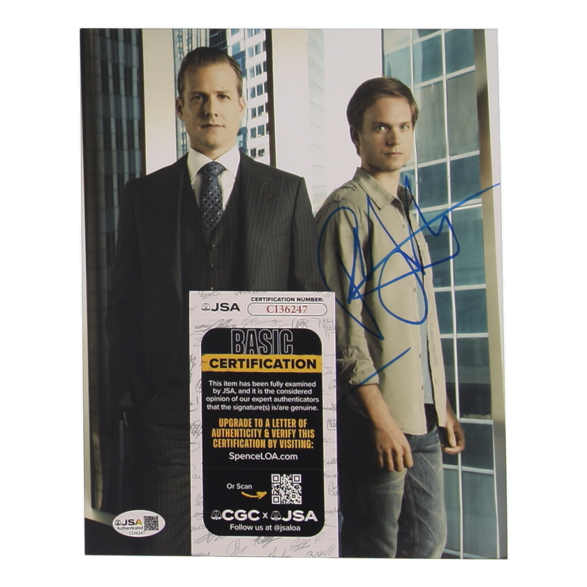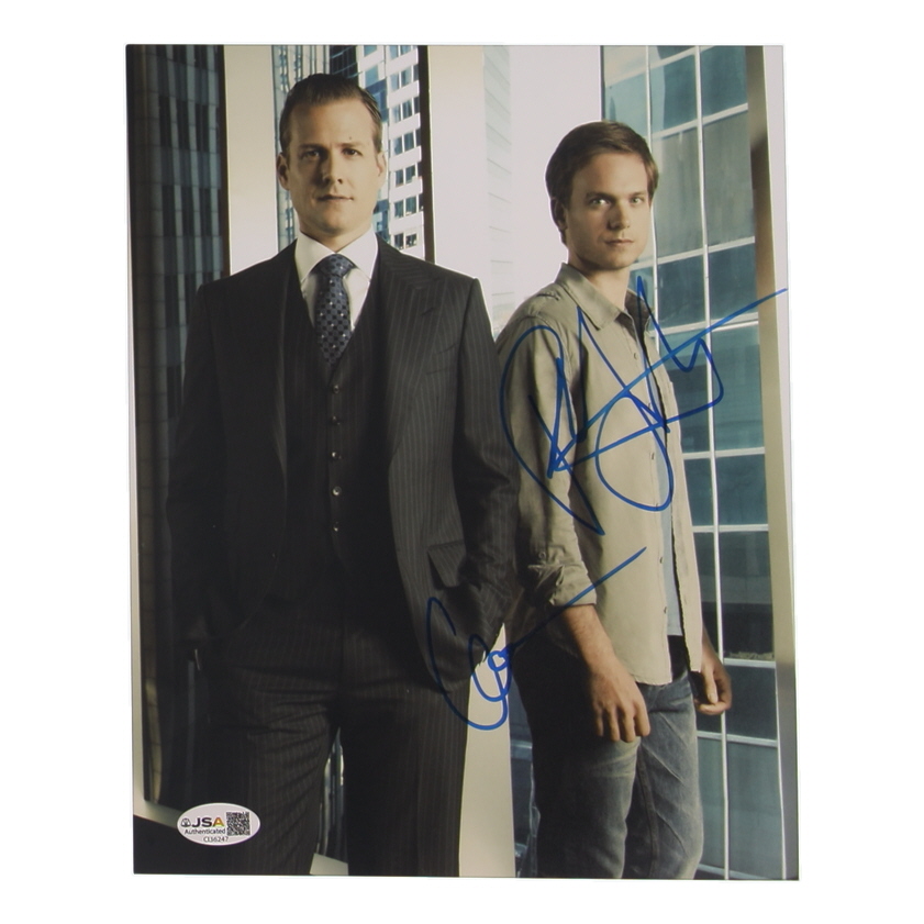 Photo measures 8" x 10" in size and has been hand-signed by Gabriel Macht (Harvey Specter) and Patrick J. Adams (Mike Ross).