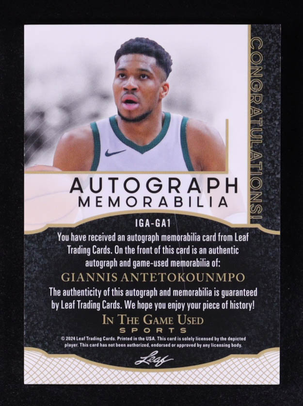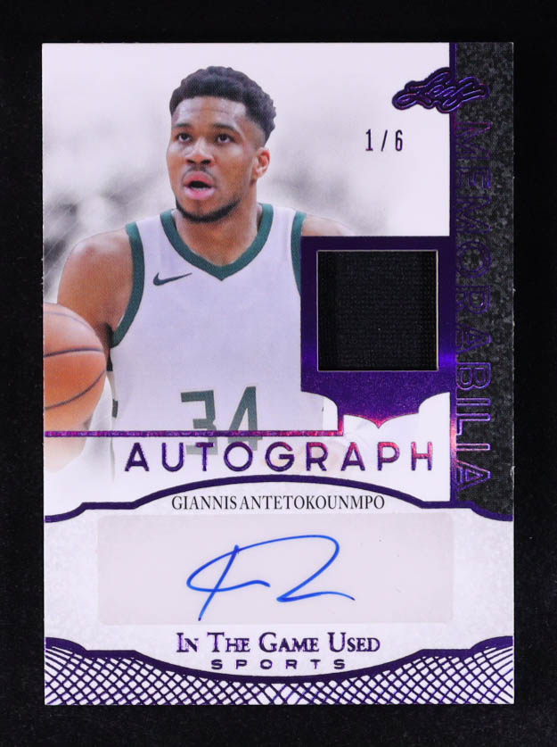Giannis Antetokounmpo 2024 Leaf ITG Used Sports Purple Foil Autograph Memorabilia #IGAGA1 #1/6