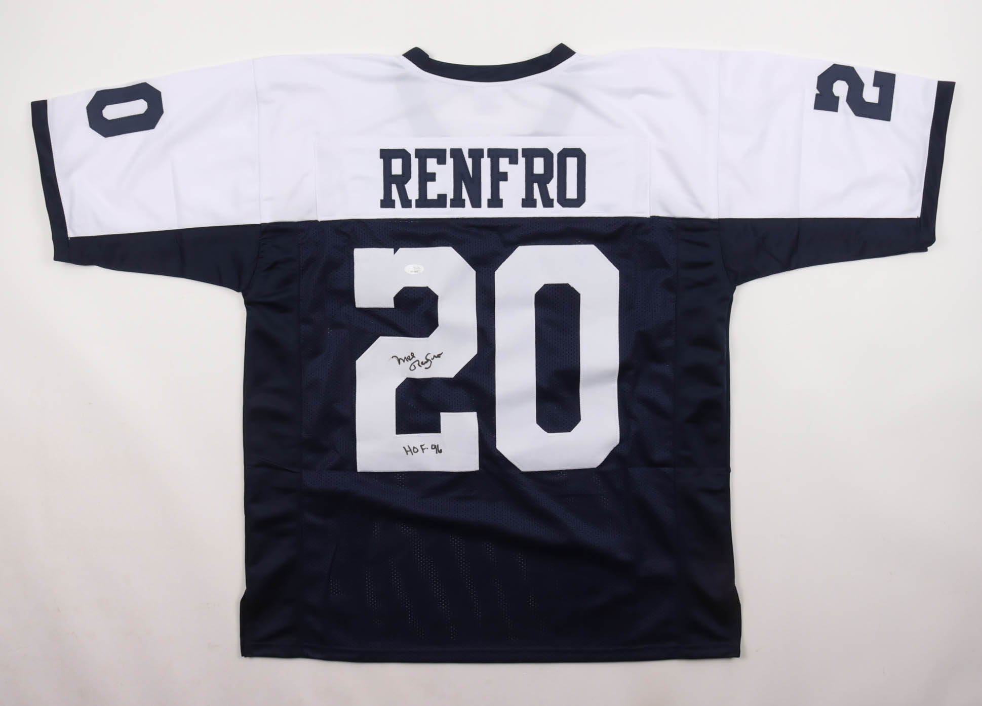 Custom jersey with everything is sewn on, size XL. Hand-signed and inscribed by Mel Renfro (HOF).