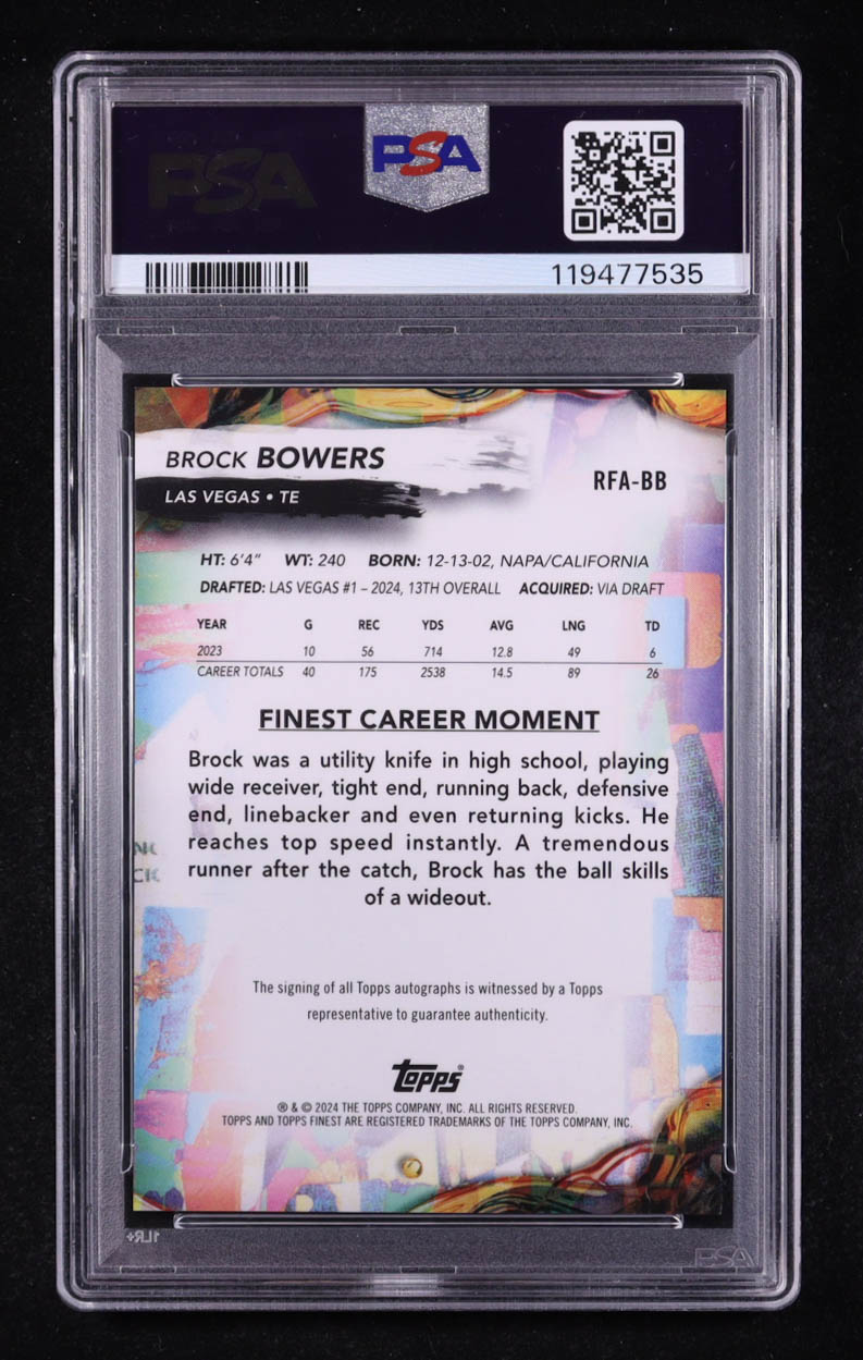 Brock Bowers 2024 Finest Rookie Autographs #RFABB RC (PSA 9)