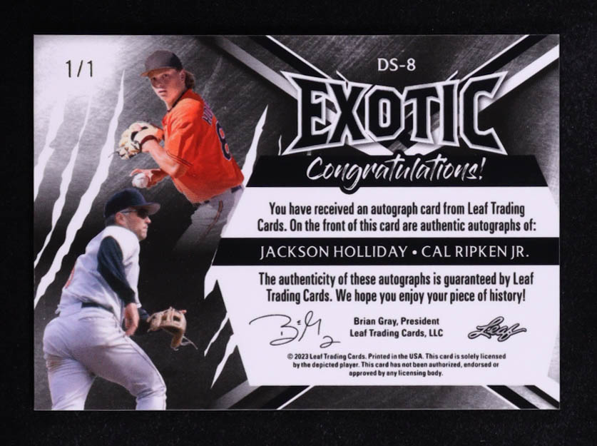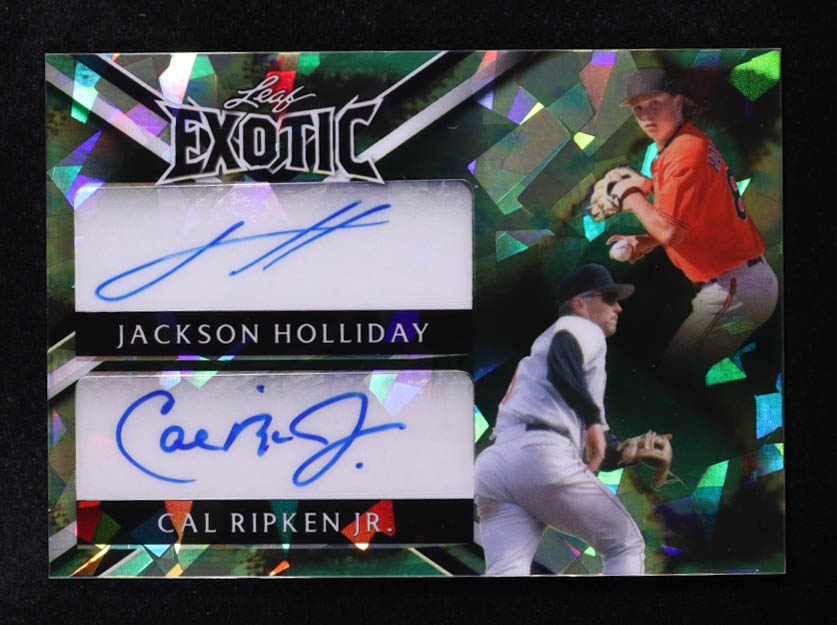 Jackson Holliday & Cal Ripken Jr. 2023 Leaf Exotic Emerald Crystal Autographs #DS8 #1/1