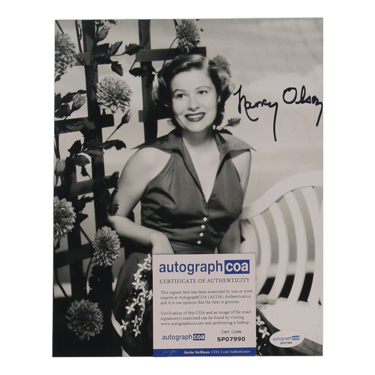 Photograph measures 8" x 10" in size. Hand-signed by Nancy Olson.