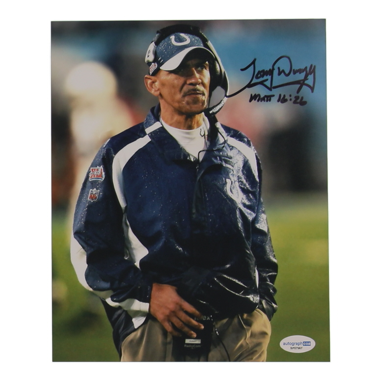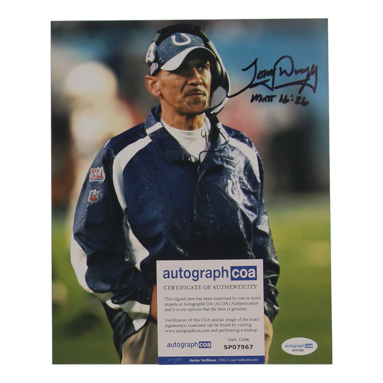 Photo measures 8" x 10" in size and has been hand-signed by Tony Dungy (Indianapolis Colts, HOF).