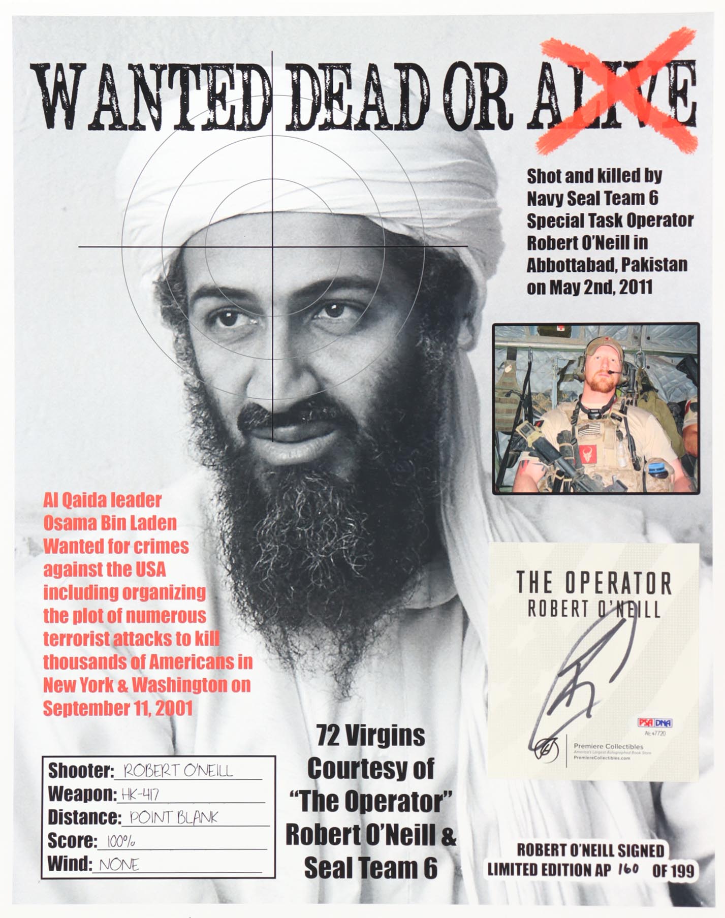 Robert O’Neill Signed LE 13x16 Photo (PSA)