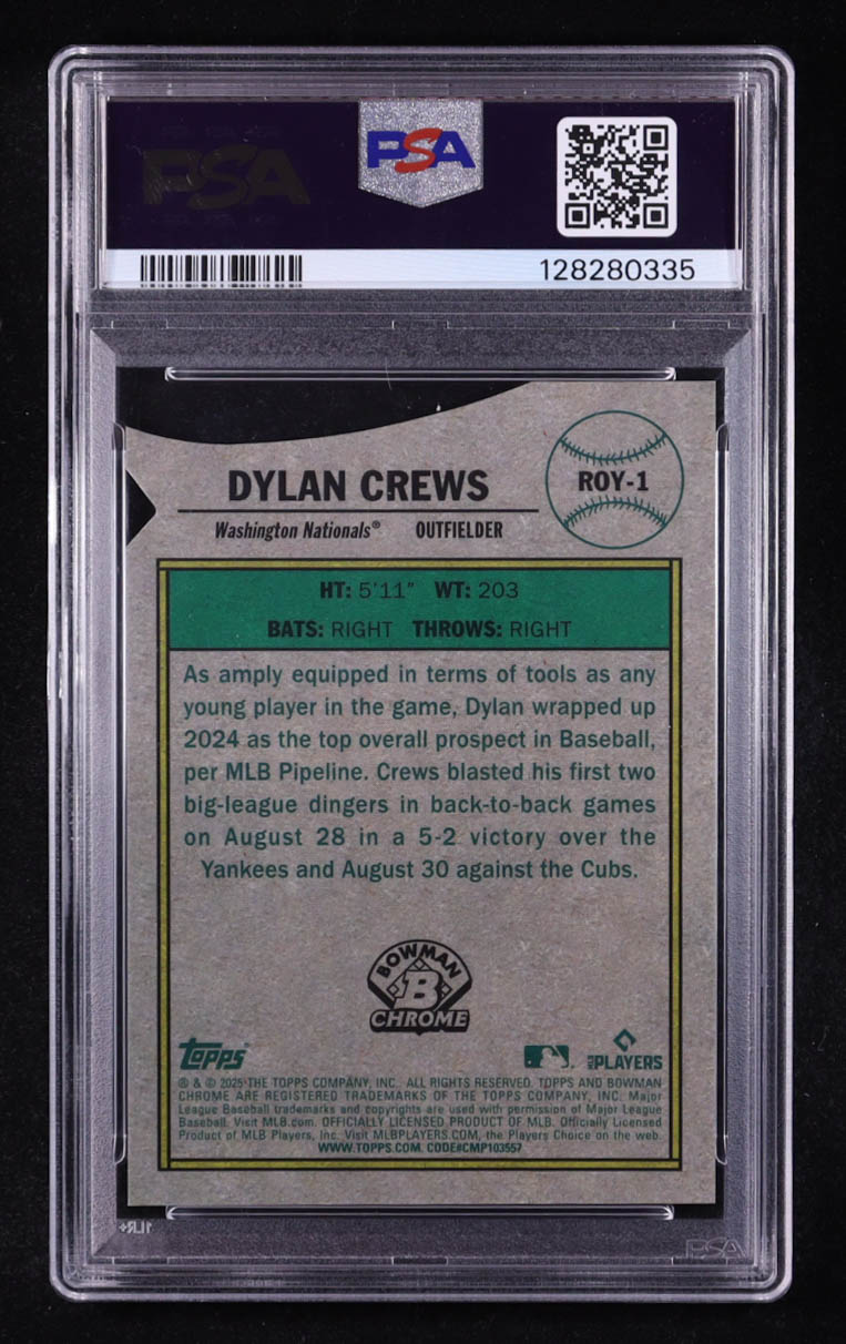 Dylan Crews 2025 Bowman Chrome Mega Box Rookie of the Year Favorites Navy Refractors #ROY1 #144/175 RC (PSA 10)