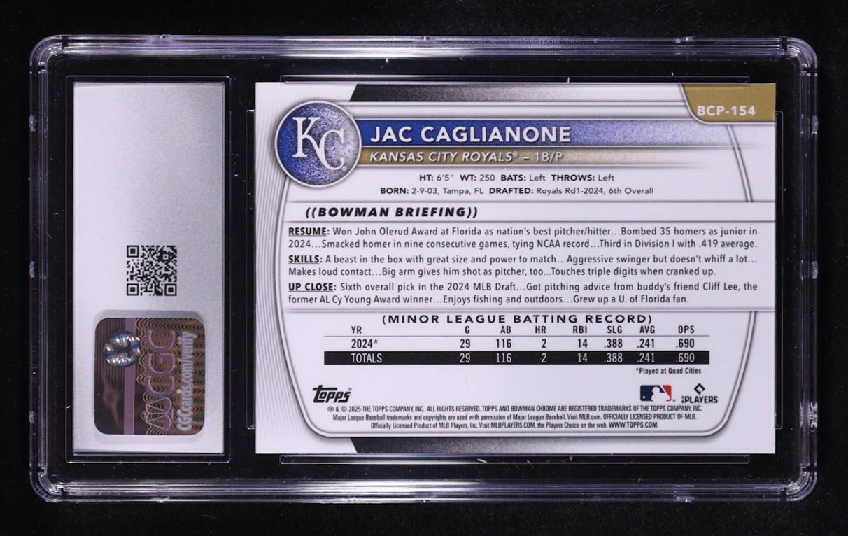 Jac Caglianone 2025 Bowman Chrome Mega Box Prospects #BCP154 RC (CGC 10)