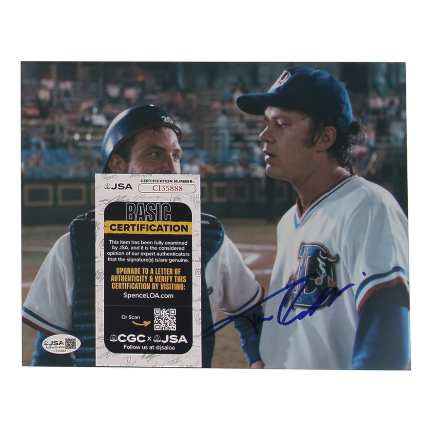 Photo measures 8" x 10" in size and has been hand-signed by Tim Robbins (Ebby Calvin 'Nuke' LaLoosh).