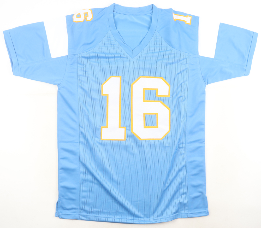 Custom jersey with everything sewn on, size XL. Hand-signed and inscribed by Ryan Leaf.
