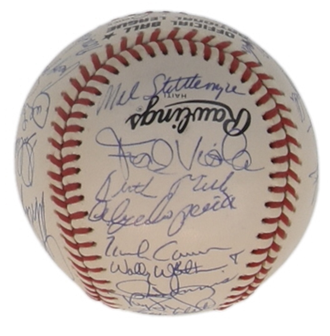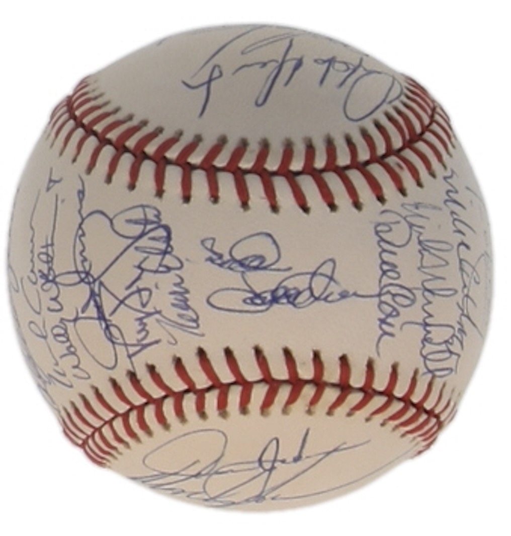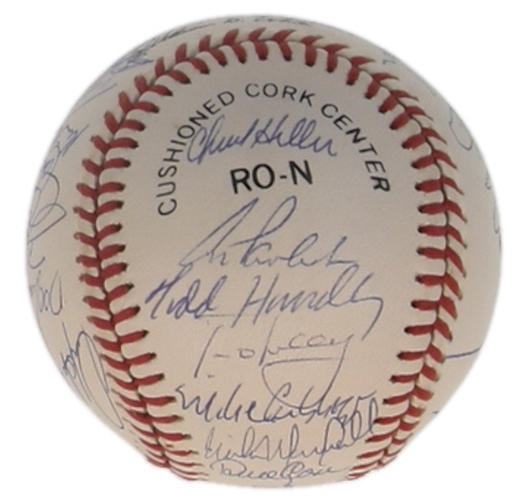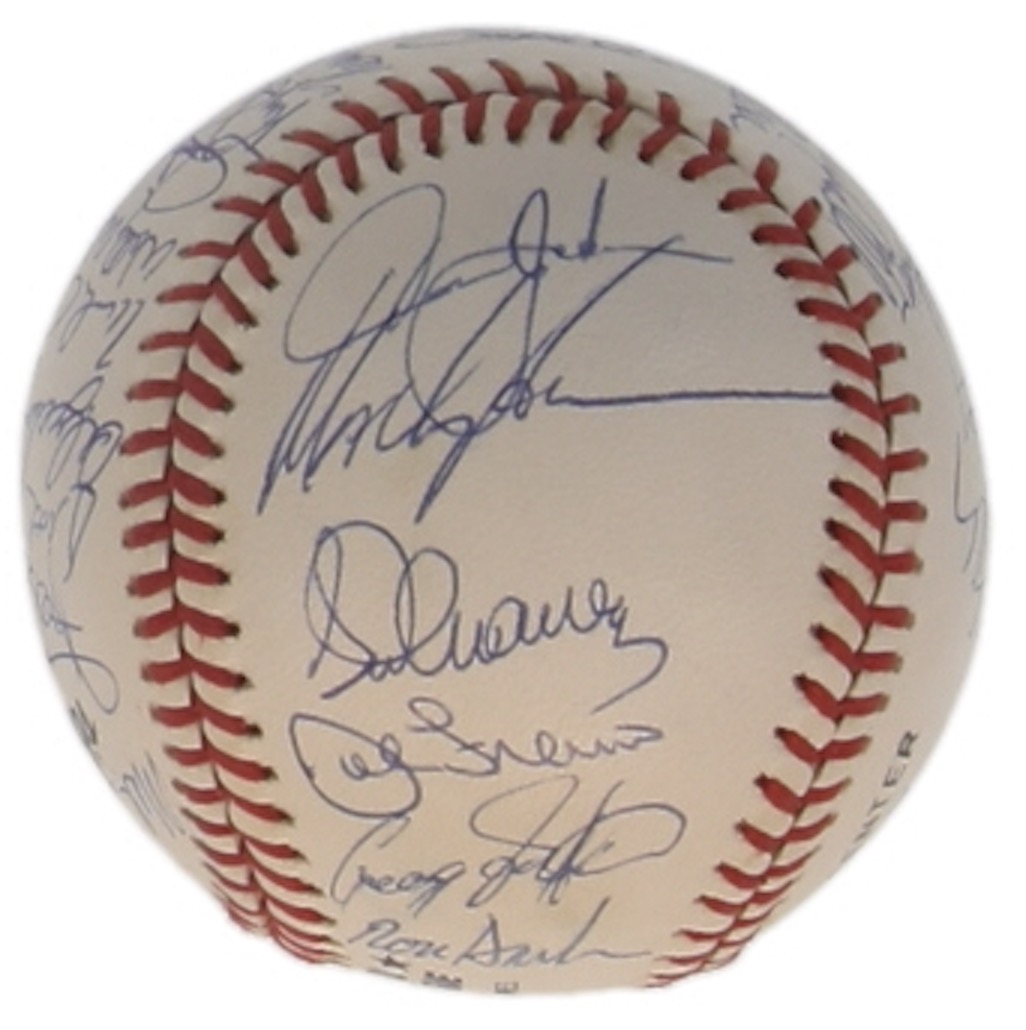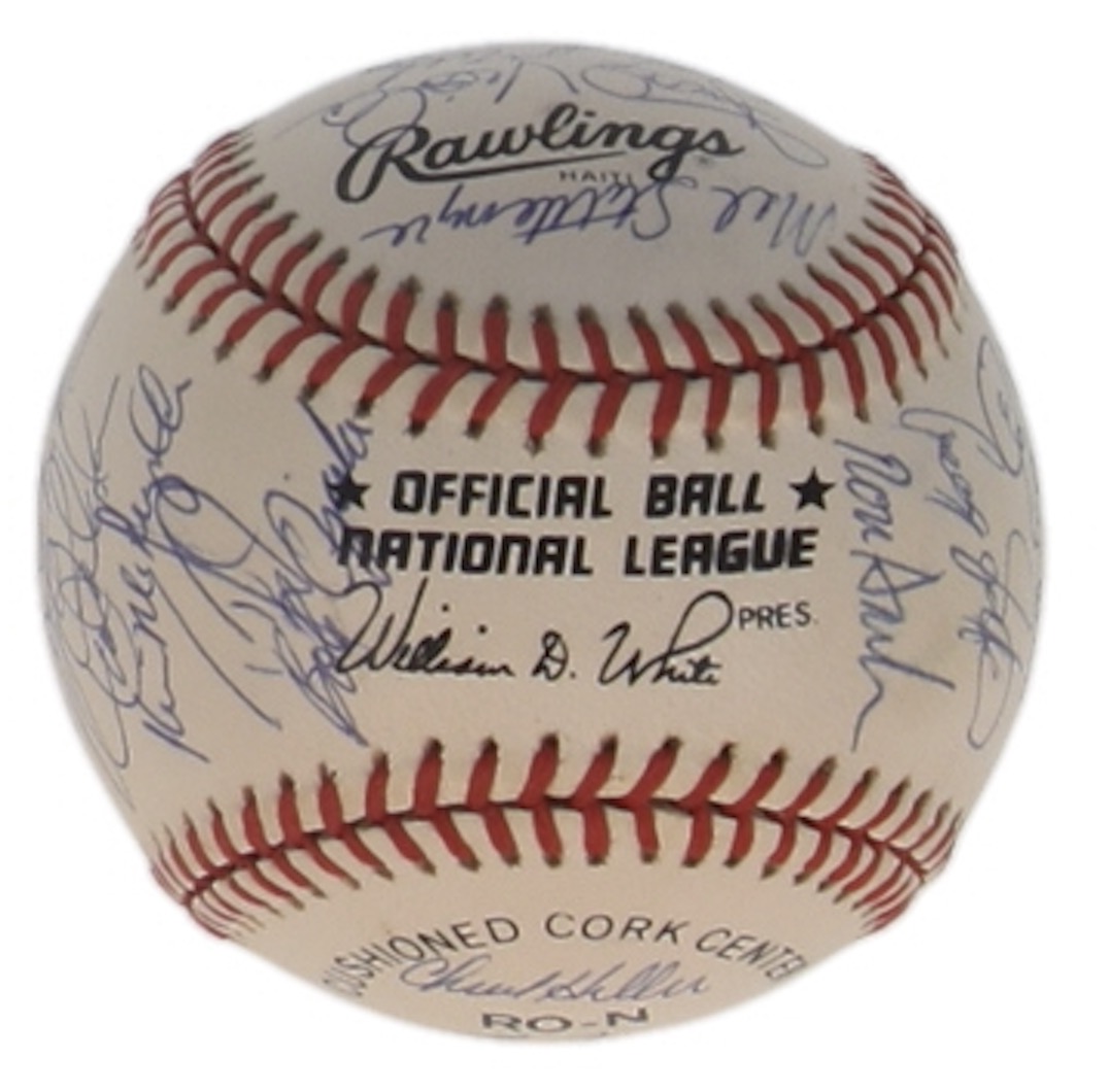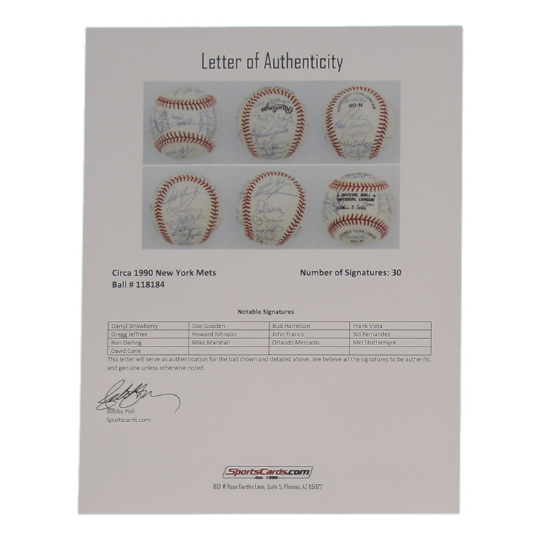 Rawlings Official National League baseball has been hand-signed by (30) New York Mets with Darryl Strawberry, Doc Gooden, Bud Harrelson, Frank Viola, Gregg Jeffries, Howard Johnson, John Franco, Sid Fernandez, Ron Darling, Mike Marshall, Orlando Mercado, Mel Stottlemyre, David Cone and (17) others.