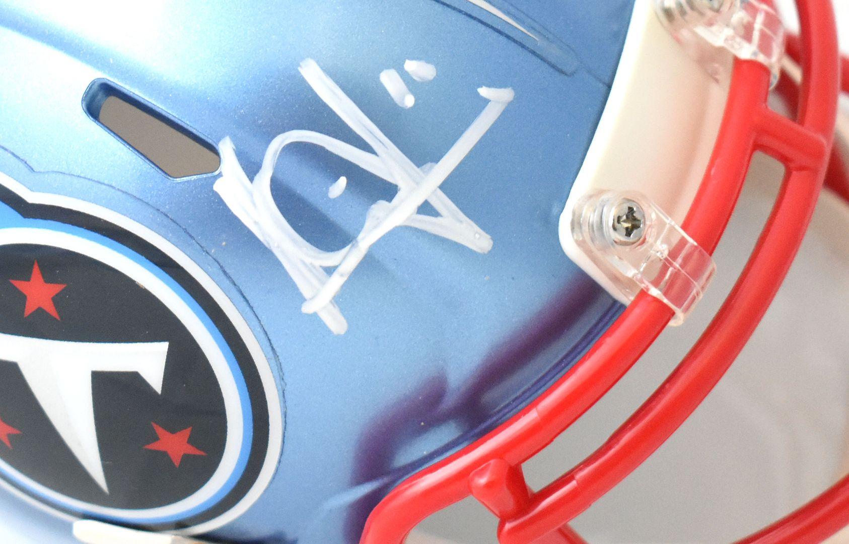 Riddell Tennessee Titans speed mini helmet has been hand-signed by Vince Young.