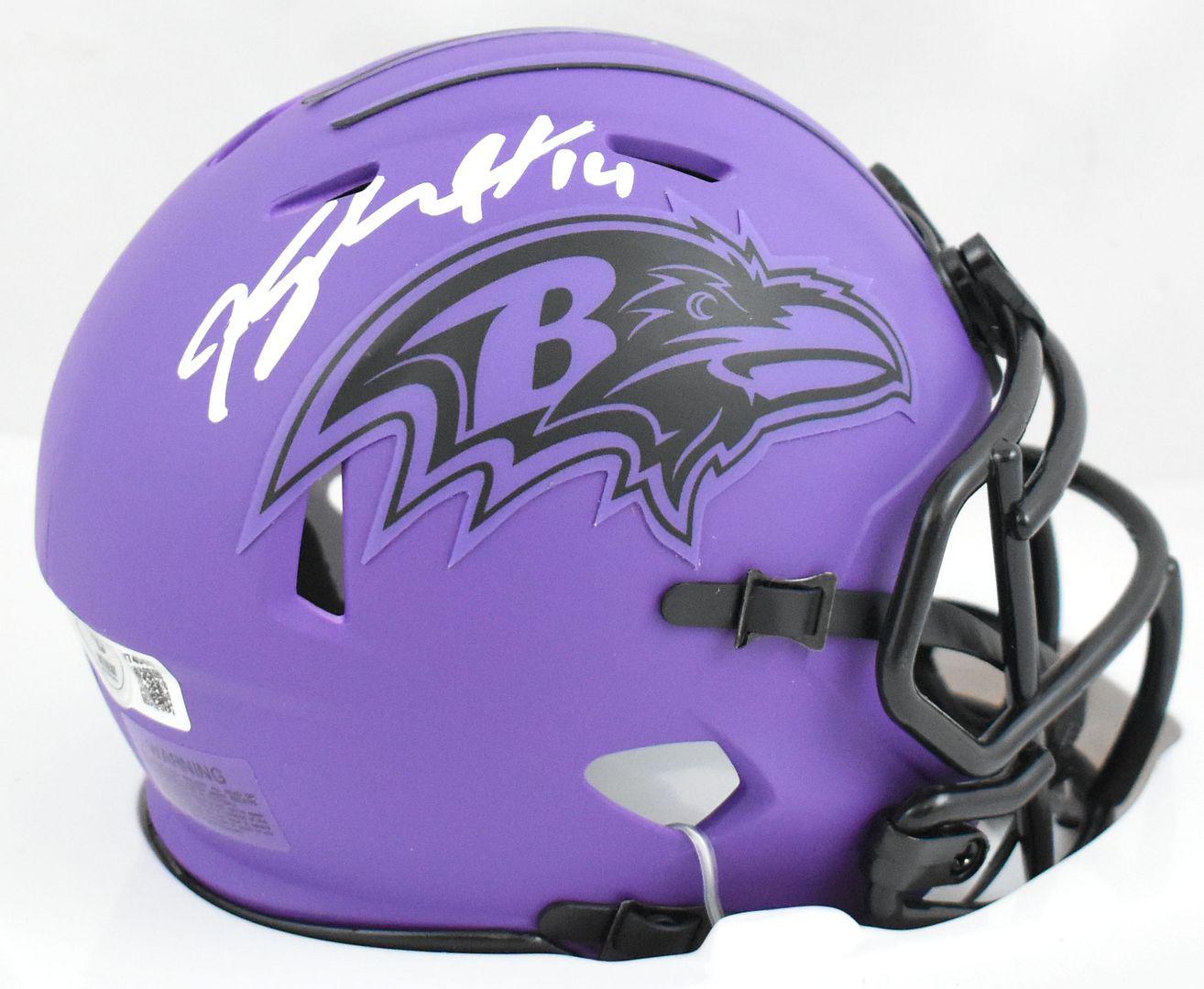 Riddell Baltimore Ravens rave alternate speed mini helmet has been hand-signed by Kyle Hamilton.