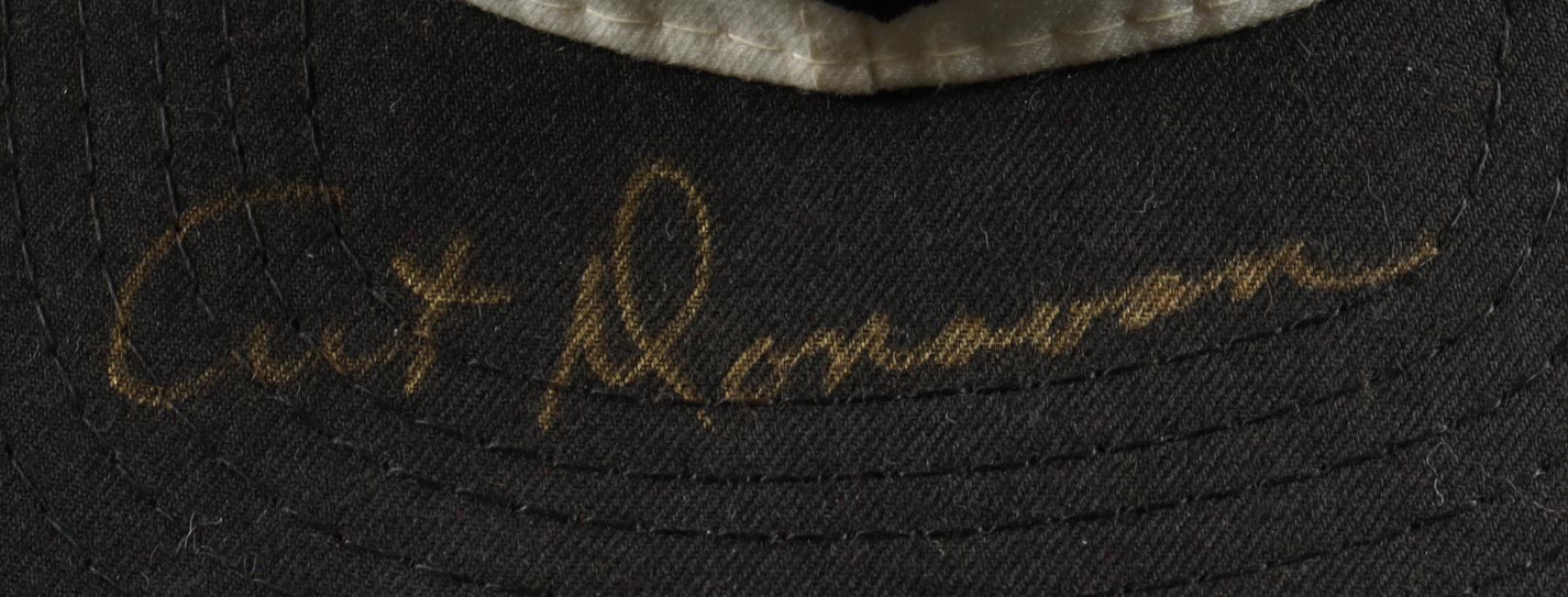 Wilson NFL 75th Anniversary Snapback Hat. Hand-signed by Art Donovan (D. 2013, Baltimore Colts, HOF). Please note, the hat shows signs of age.
