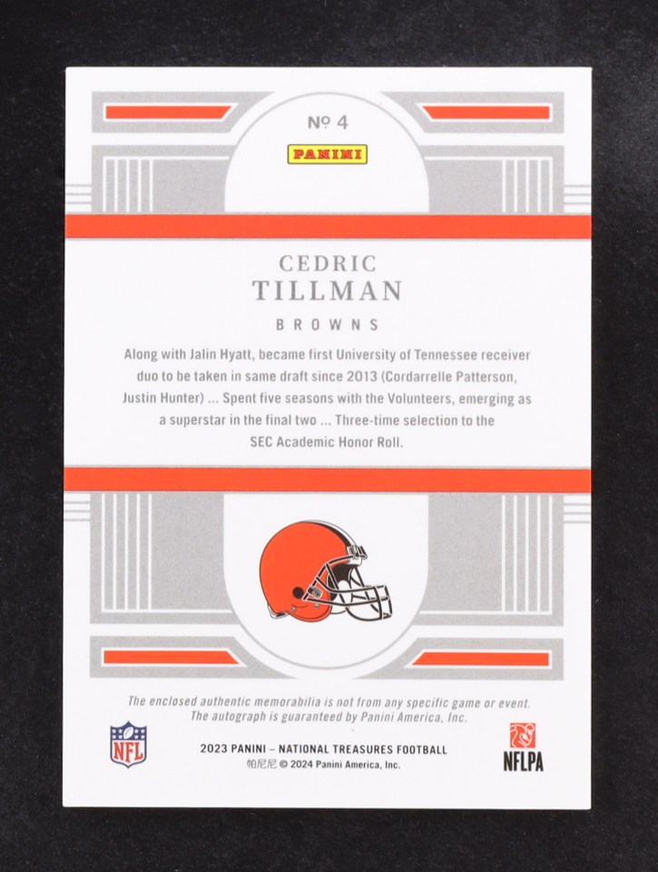 Cedric Tillman 2023 National Treasures Rookie Jumbo Swatches Autographs #4 #02/10 RC