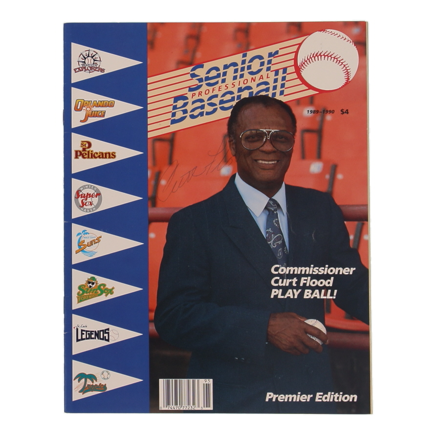 Curt Flood Signed 1989-90 Senior Professional Baseball Magazine (Beckett)