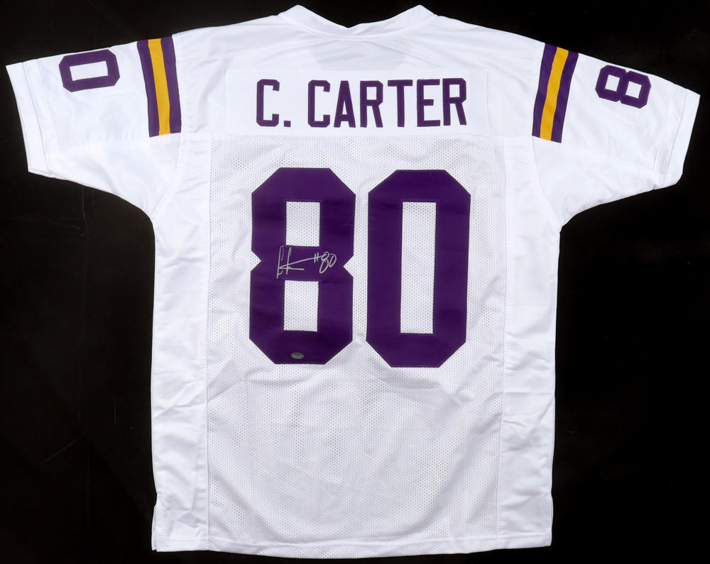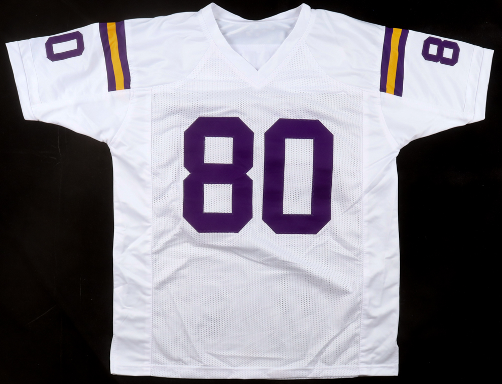 Custom jersey with everything sewn own, size XL. Hand-signed by Cris Carter (HOF).