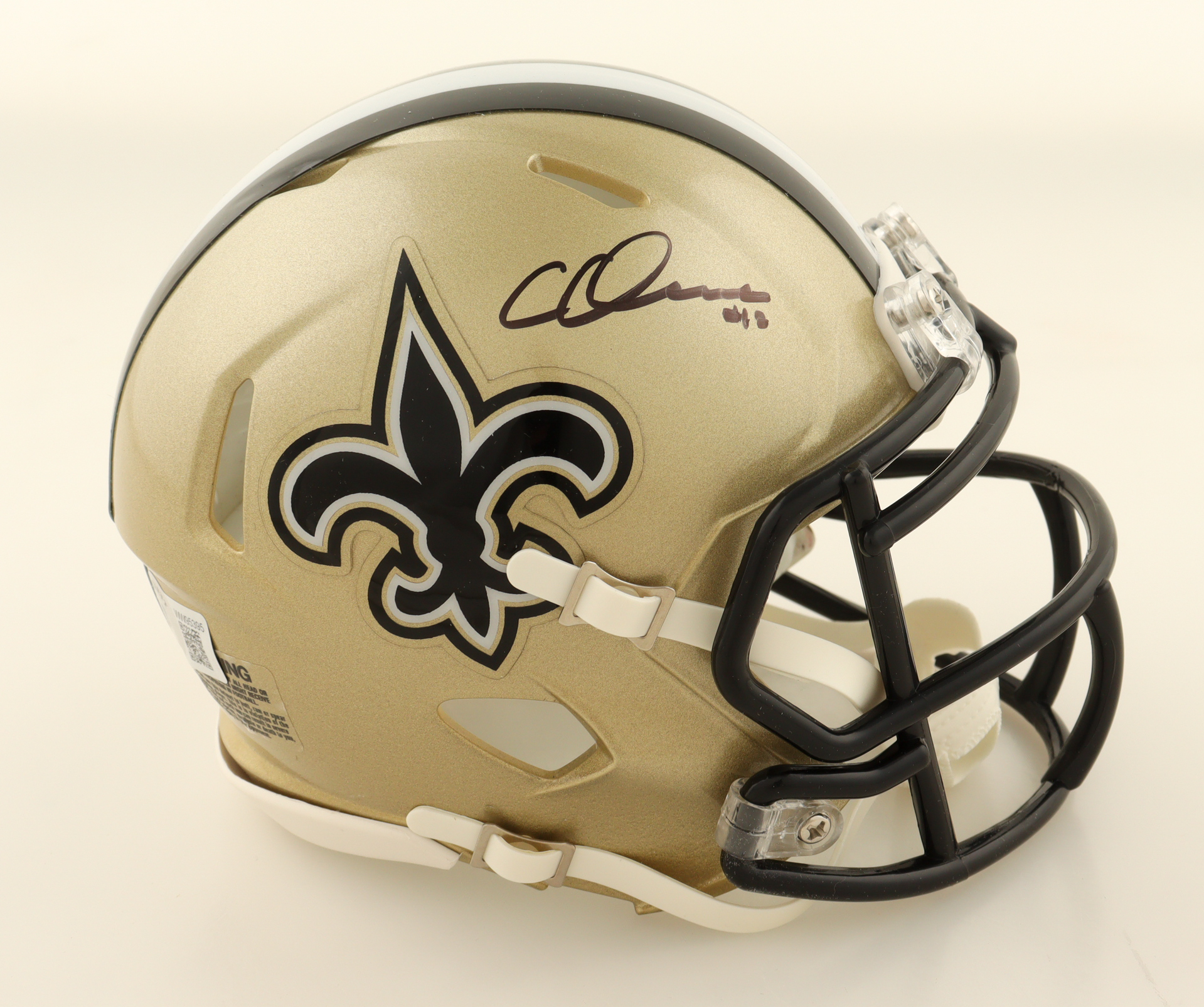 Riddell New Orleans Saints Speed Mini Helmet. Hand-signed by Chris Olave.
