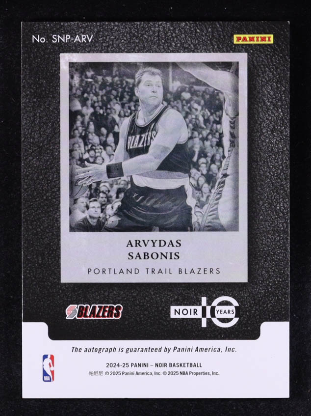 Arvydas Sabonis 2024-25 Panini Noir Snapshot Signatures Platinum #24 #1/1