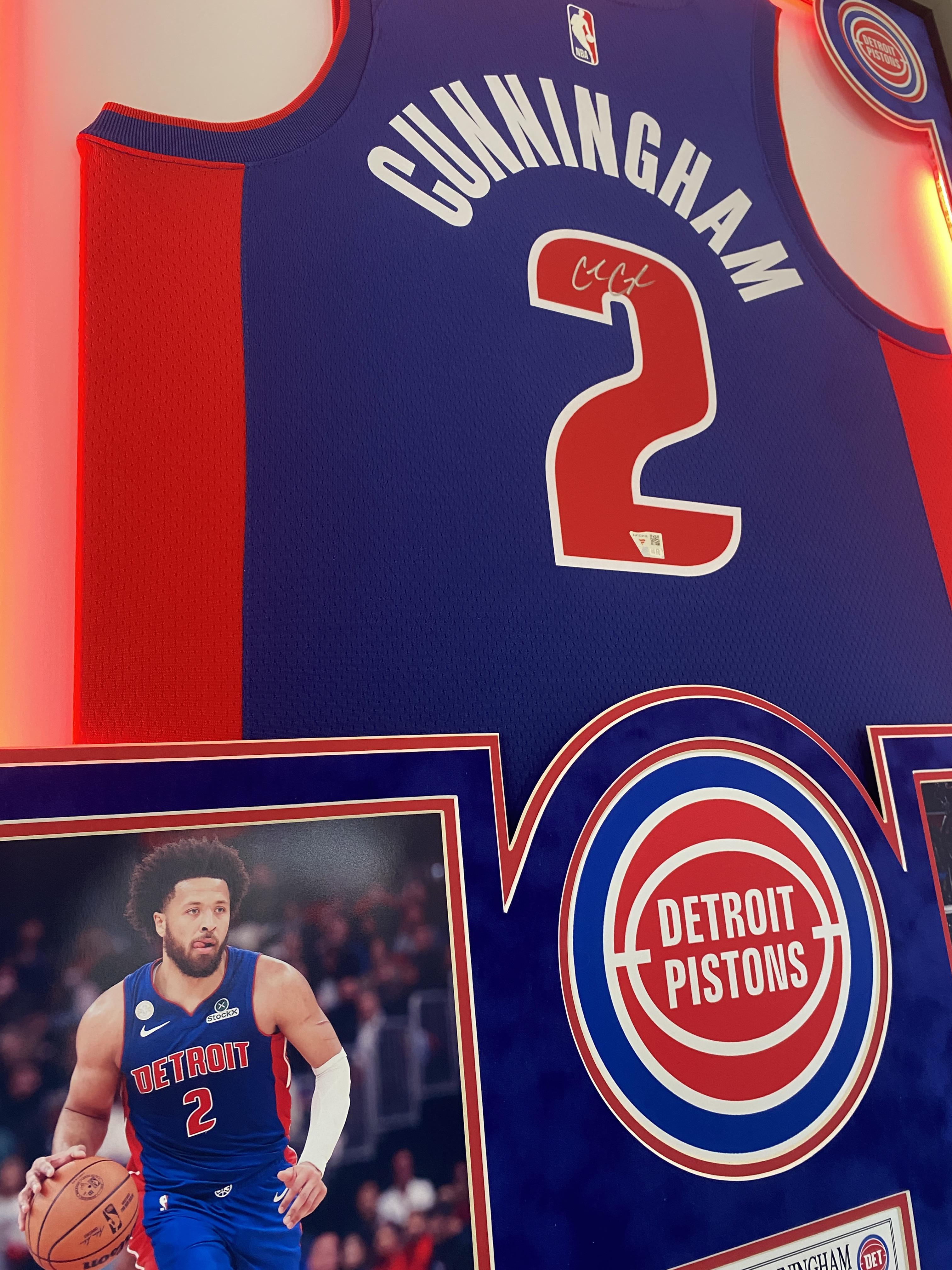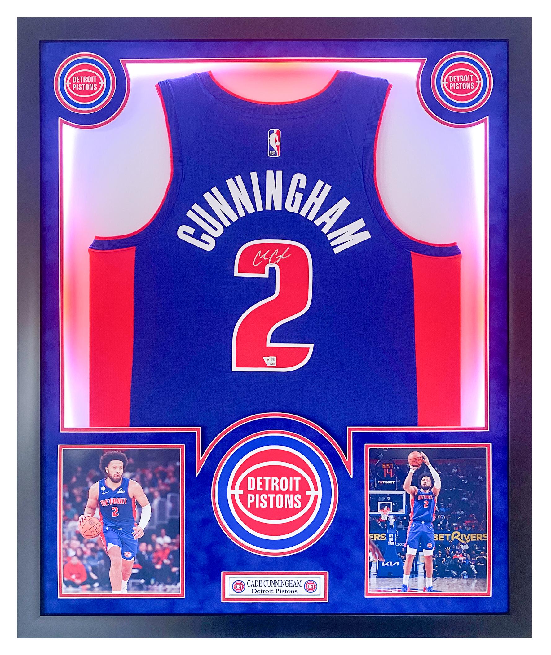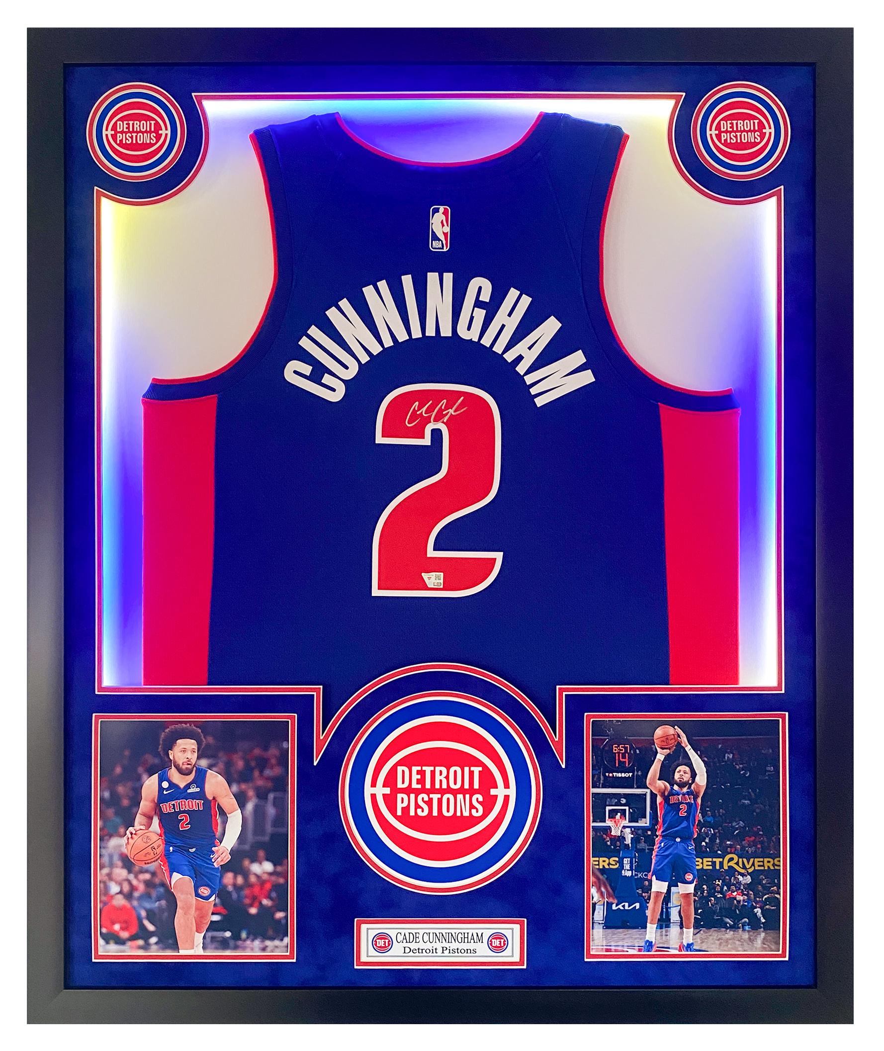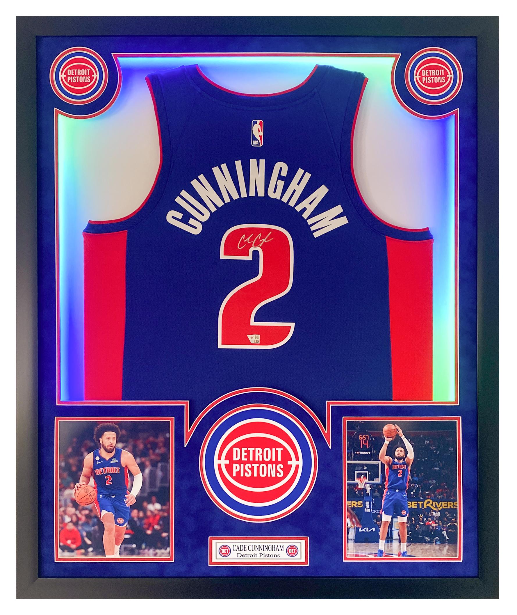 Cade Cunningham Signed Pistons Custom Framed Jersey Display with LED Lights (Fanatics)