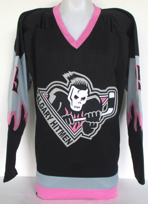"Calgary Hitmen" hockey jersey, everything sewn on, has been hand-signed in black felt-tip pen by Bret Hart.