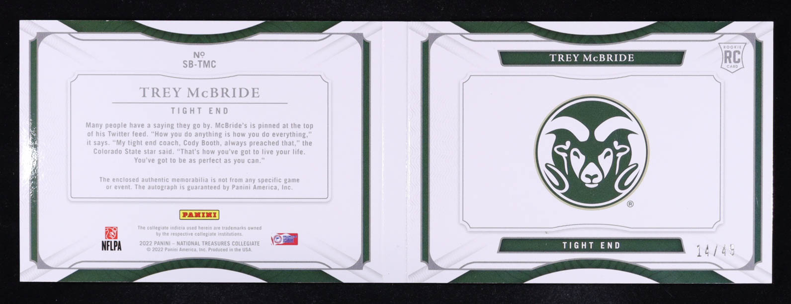 Trey McBride 2022 Panini National Treasures Collegiate College Material Signatures Booklet Gold #36 RC #14/49
