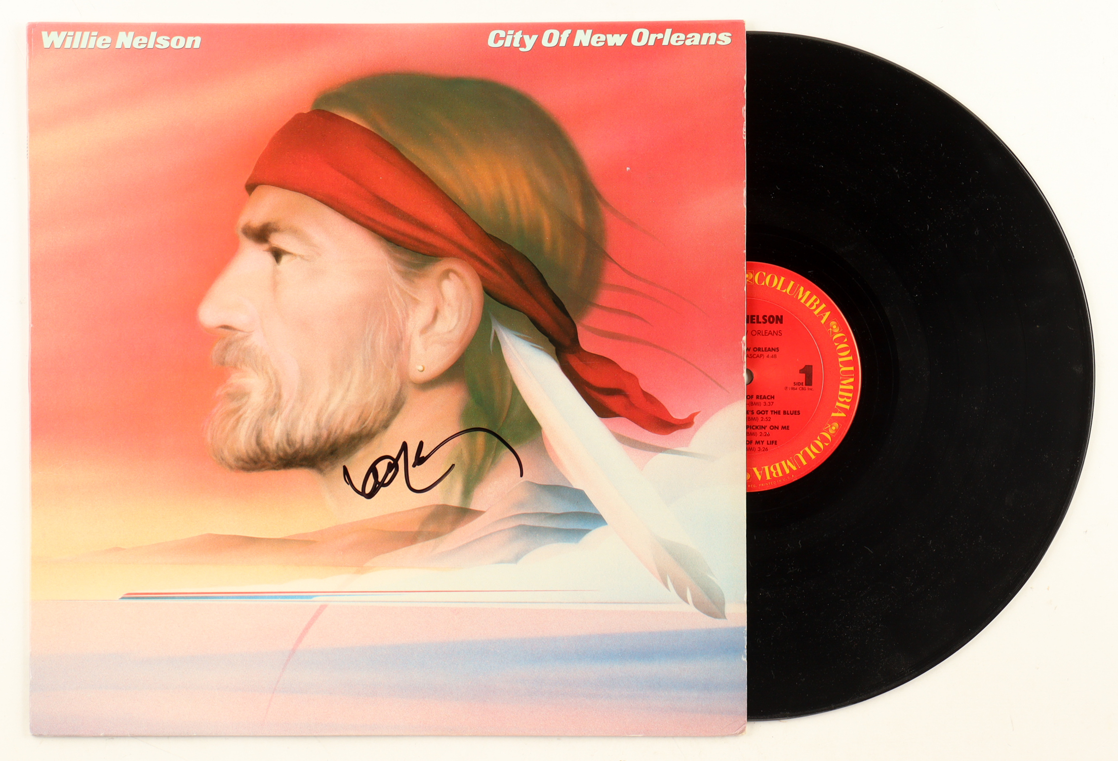 "City of New Orleans" vinyl record album has been hand-signed on the album cover by Willie Nelson. The vinyl record is included.