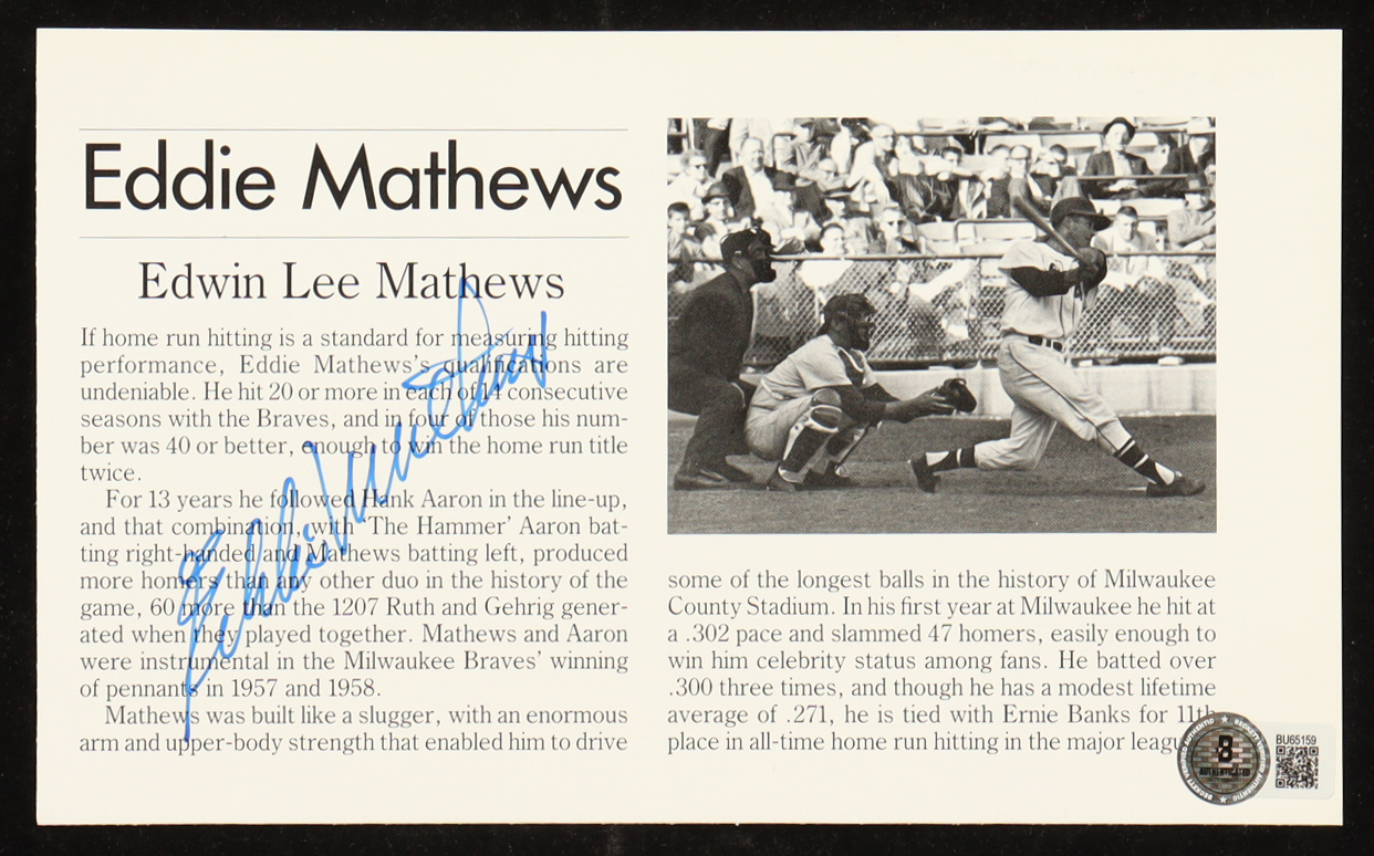 News cutout measures 5.5" x 9" and has been hand-signed by Eddie Matthews (Atlanta Braves).