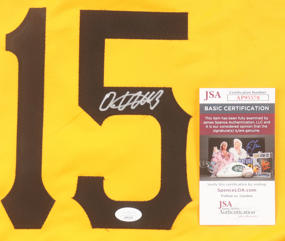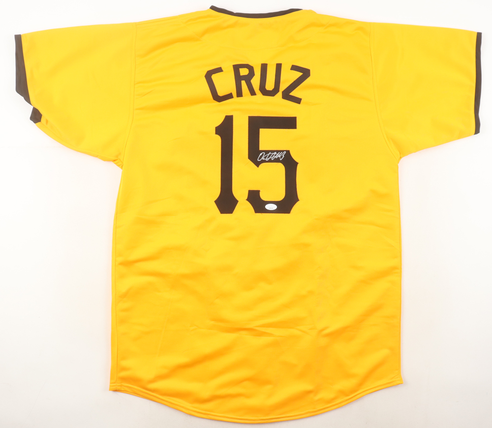 Custom jersey with everything sewn on, size XL. Hand-signed by Oneil Cruz.