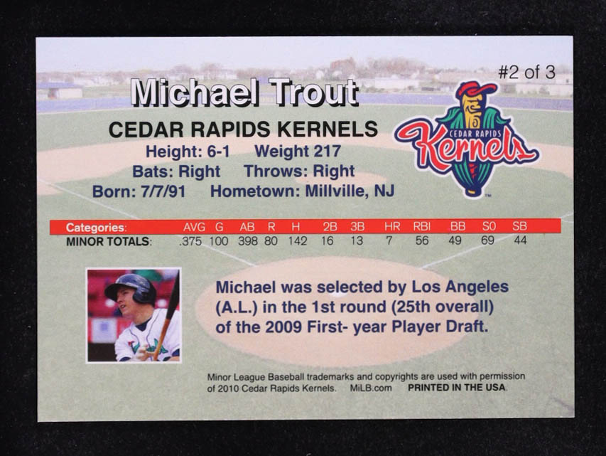 Mike Trout 2010 Cedar Rapids Kernels Rising Alumni Team Issue #2 RC