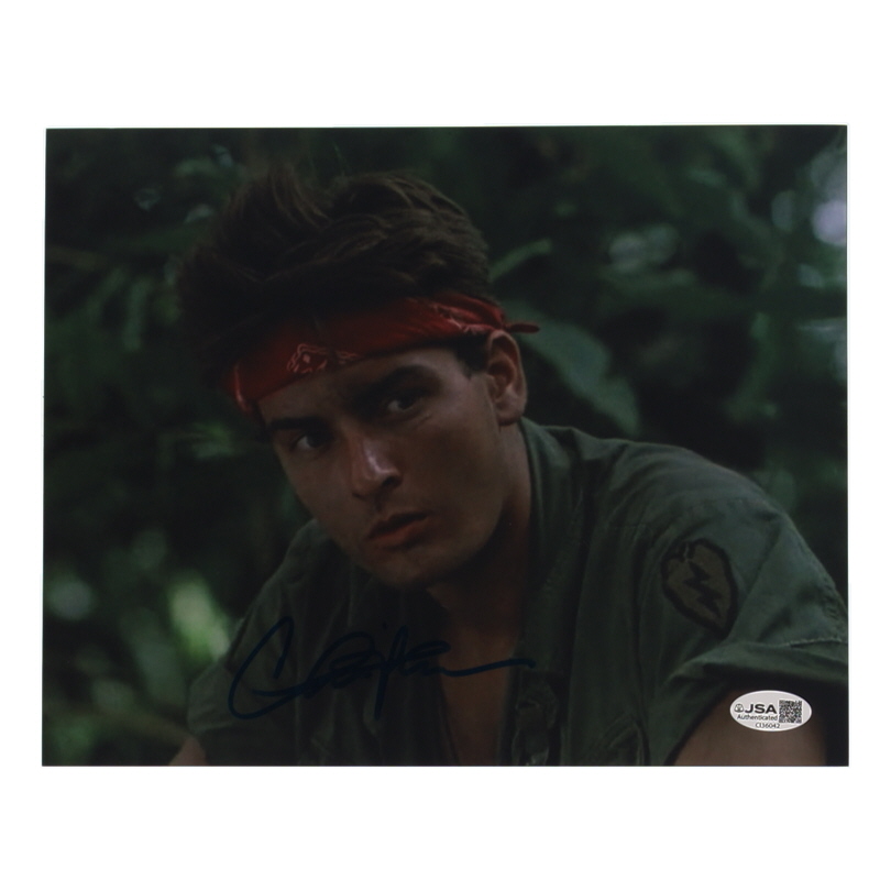 Charlie Sheen Signed "The Platoon" 8x10 Photo (JSA)