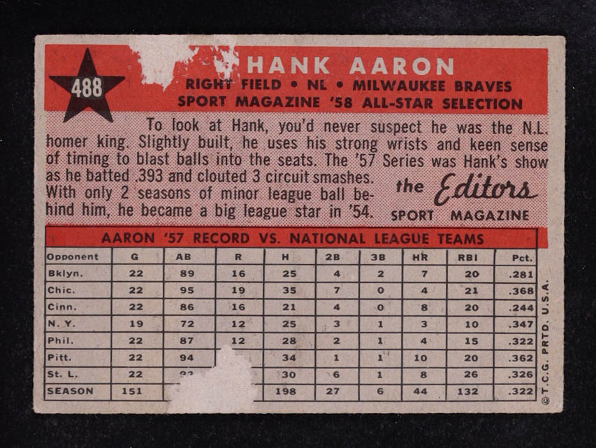 Please see photos for more details regarding the condition of the card (Milwaukee Braves).