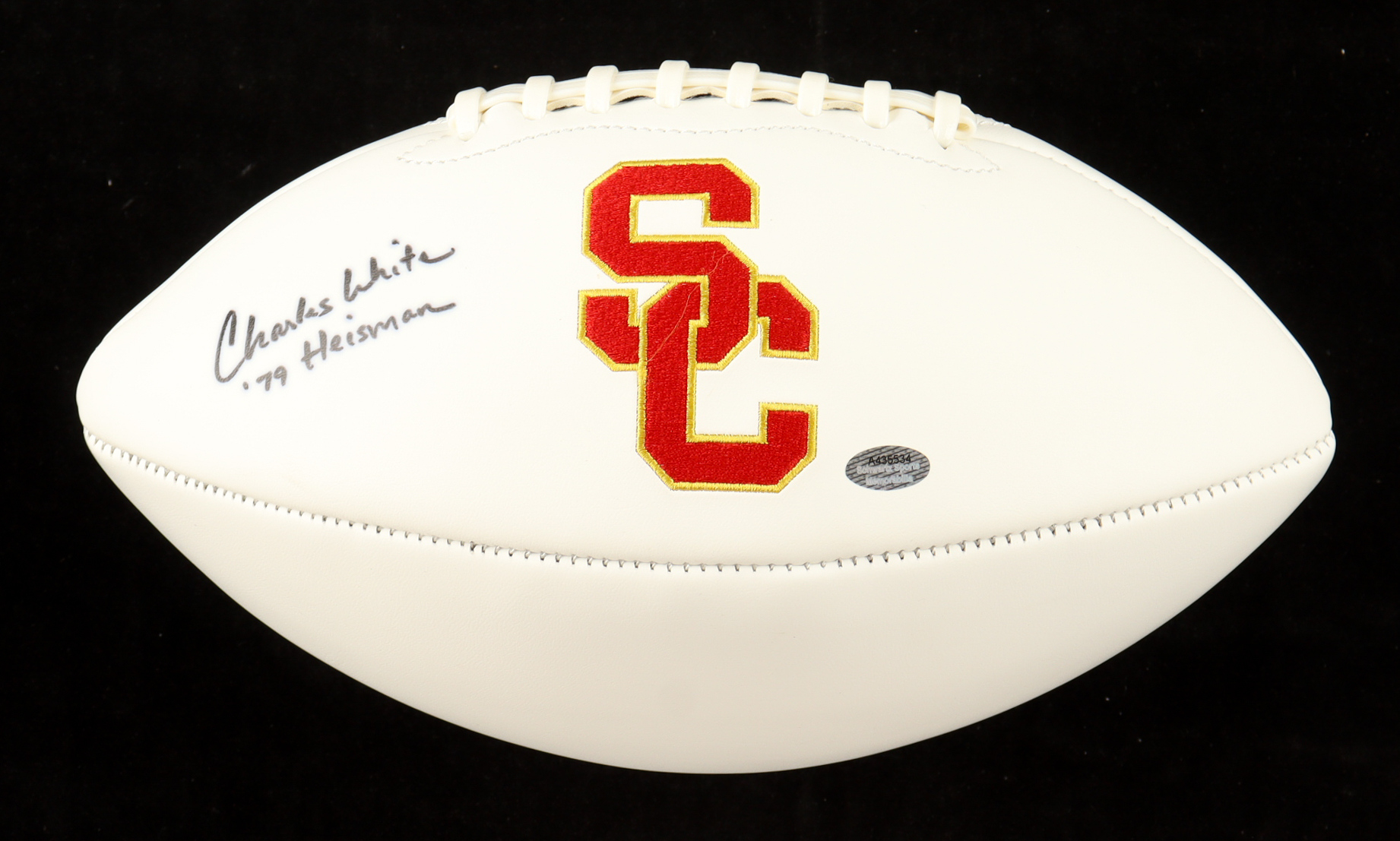 Rawlings USC Trojans Logo Football. Hand-signed and inscribed by Charles White (D. 2023). Please note, the signature has bled.