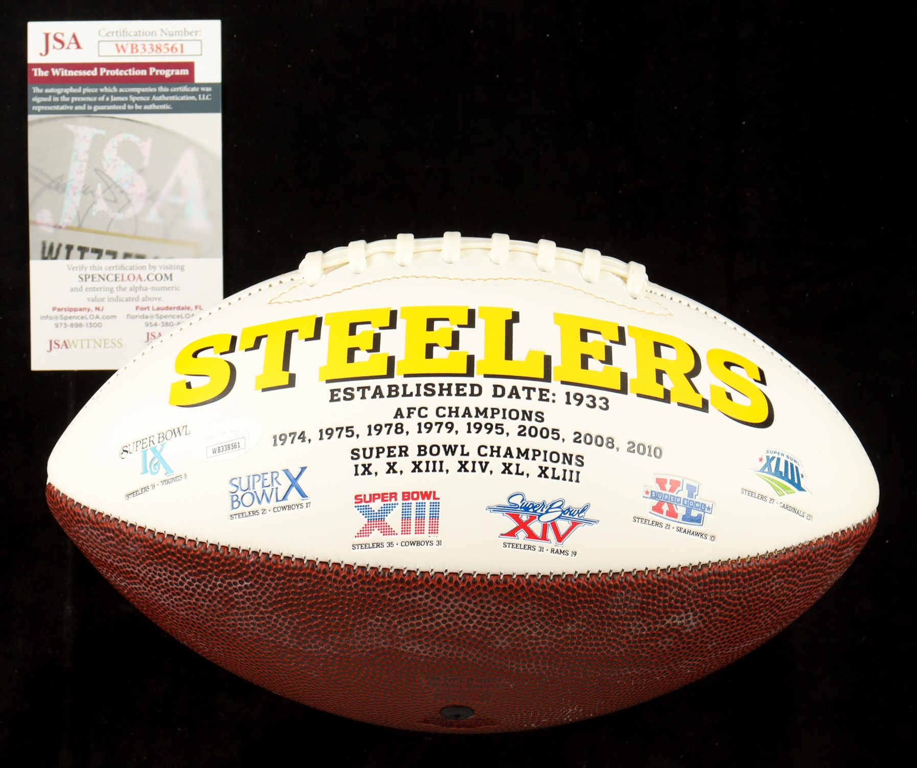 Pittsburgh Steelers logo football. Hand-signed by Michael Vick (HOF). Please note, there is scuffing on the ball - see photos for more detail.