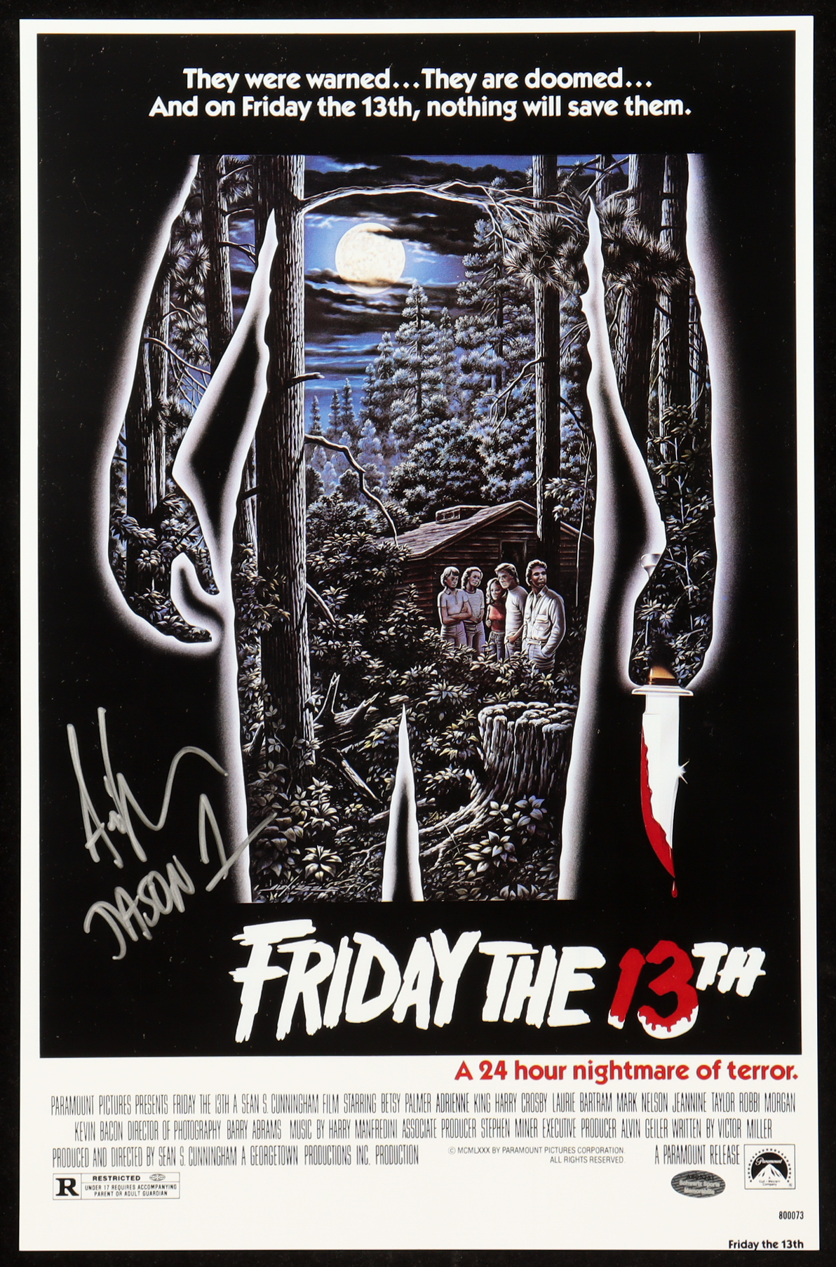 Movie Poster measures 11” x 17” in size and has been hand-signed and inscribed by Ari Lehman.