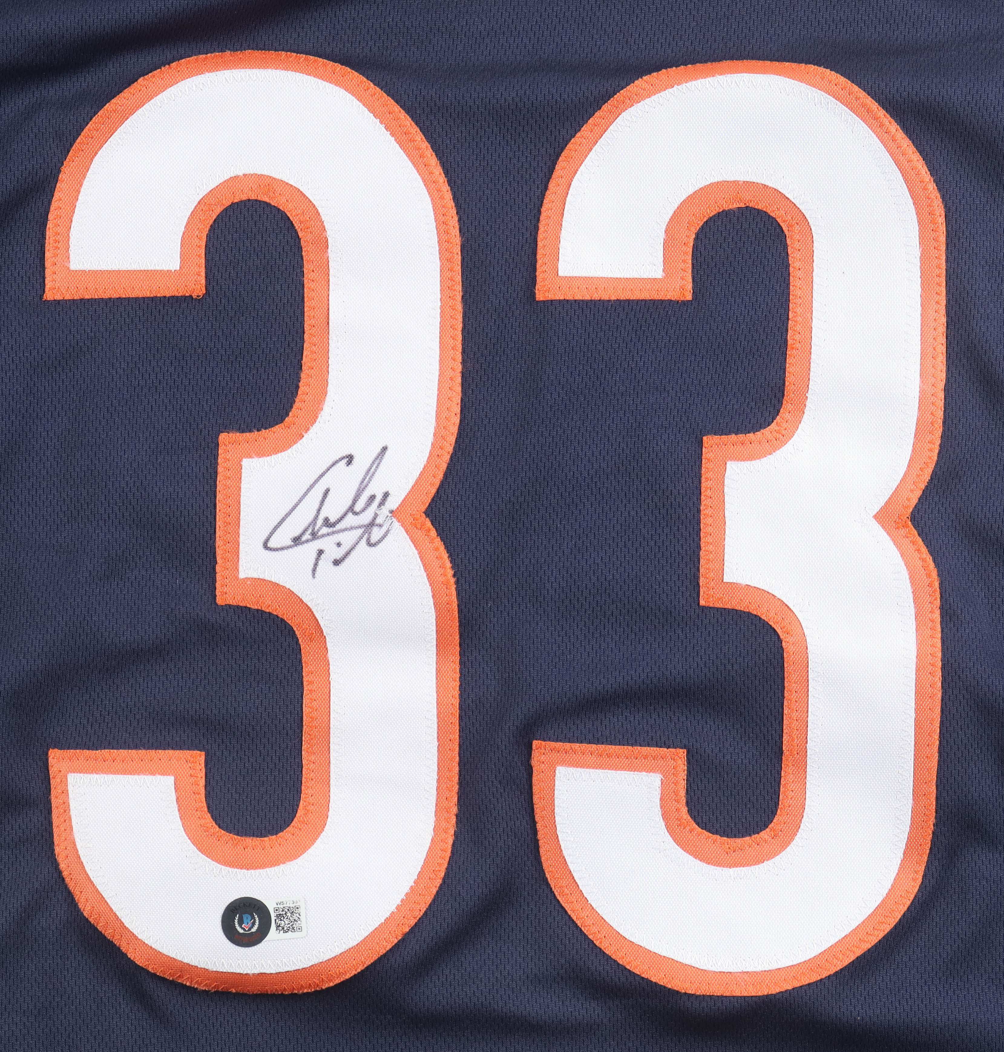 Custom jersey with everything sewn on, size XL. Hand-signed by Charles Tillman.