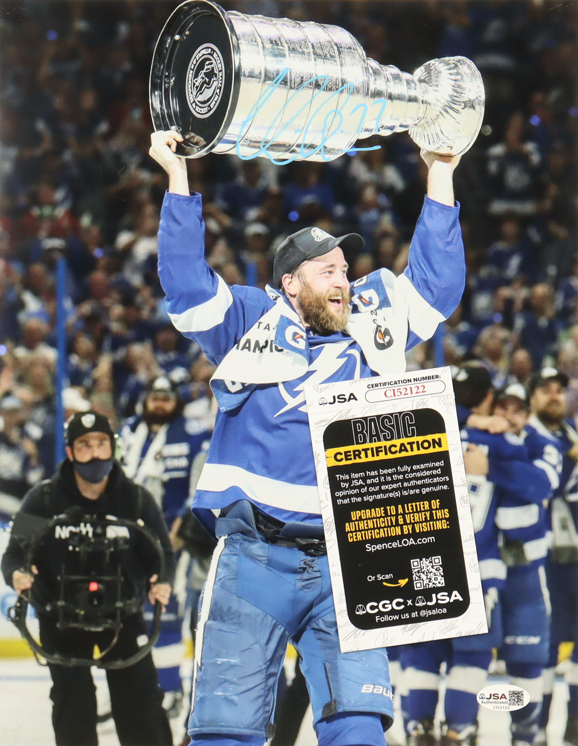 Photo measures 11" x 14" in size and has been hand-signed by Victor Hedman (Tampa Bay Lightning). 2-time Stanley Cup Champion, 6-time NHL All-Star, 2020 Conn Smthye Trophy Winner.