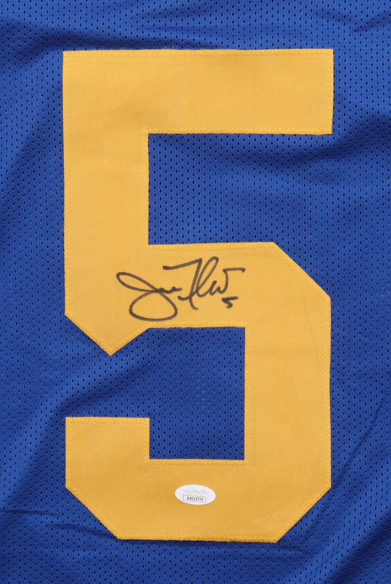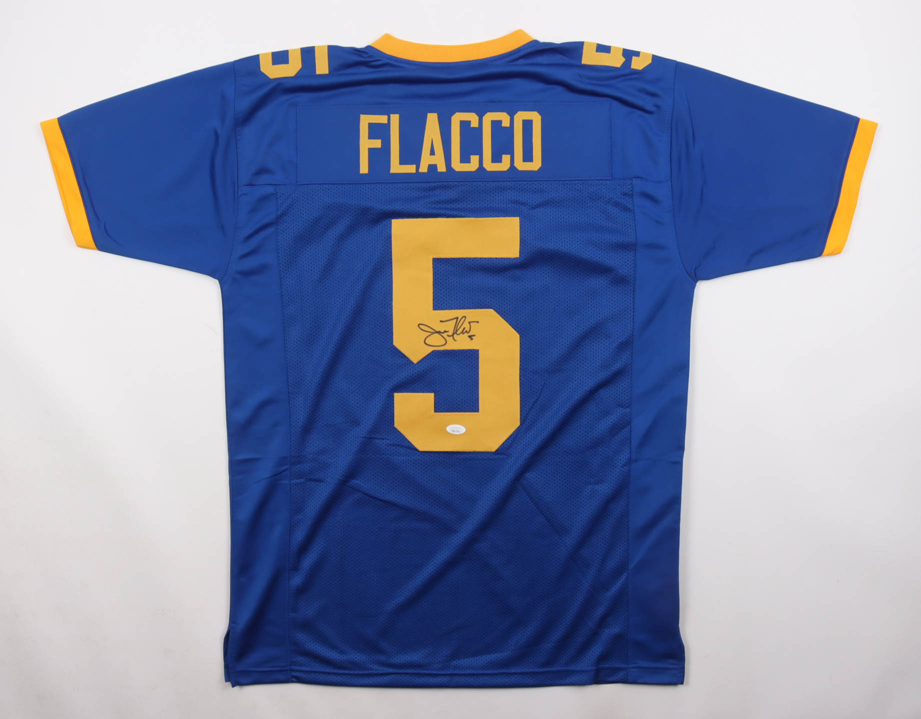 Custom jersey with everything sewn on, size XL. Hand-signed by Joe Flacco. Pleas note, glue is visible through the reverse number.