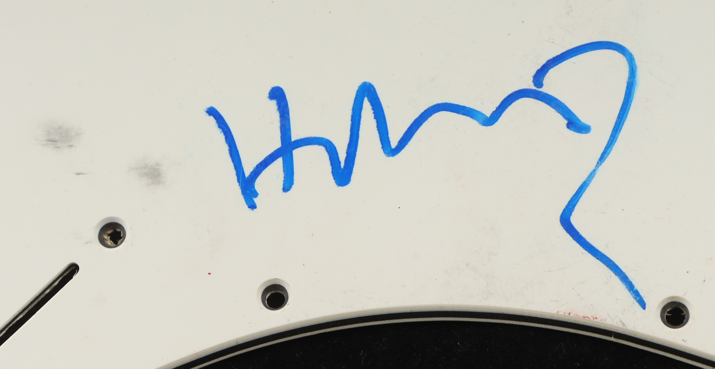 White electric guitar pickguard has been hand-signed by Harry Styles.